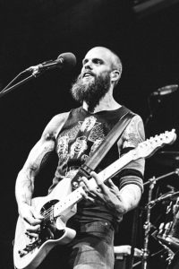 Baroness betraten nach kurzer Pause die Bühne und eröffneten ihr Set mit 'Kerosene' vom aktuellen Album "Purple". Und weil 'Kerosene' ein toller Uptempo-Rocksong ist, war das Publikum von Beginn an sehr gut drauf - es bangte, pogte und tanzte ausgelassen im ausverkauften Bürgerhaus Stollwerck. So sollte es während des ganzen Sets weitergehen, denn fast alle an diesem Abend von Baroness gespielten Songs schlugen in eine ähnliche Kerbe wie der Opener. Das Quartett rockte sich sehr souverän durch die von Songs der letzten beiden Alben "Purple" sowie "Yellow & Green" geprägte Setlist. John Baizley zeigte nur bei wenigen Parts Schwächen, in denen er nicht druckvoll und laut sang, sondern etwas leiser performte.