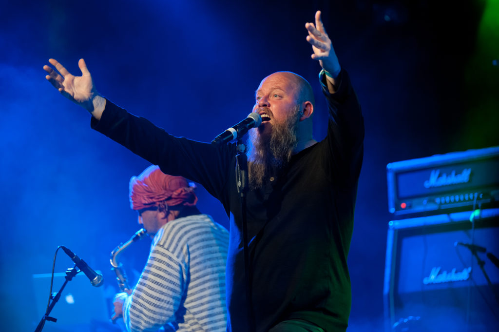 Apropos düster – das zu gefühlt zu 70 Prozent auf Visuals beruhende Konzept der Nordic Giants verstörte einige Festivalbesucher ebenso wie der Umstand, dass die Projektionen während ihres spektakulären Auftritts oft auch das einzige Licht im Raum lieferten – psychedelisch für Betrachter, ein Alptraum für Fotografen. Ansonsten war das einfach groß gedacht und in Szene gesetzt – das Konzert begann wie eine Filmvorführung mit Titel, Credits und so weiter. Der vielleicht druckvollste Sound des Festivals führte zu einer besonders spürbaren Steigerung, als nach gefühlt zehn Minuten erstmals Live-Keyboards und -Drumming einsetzte.