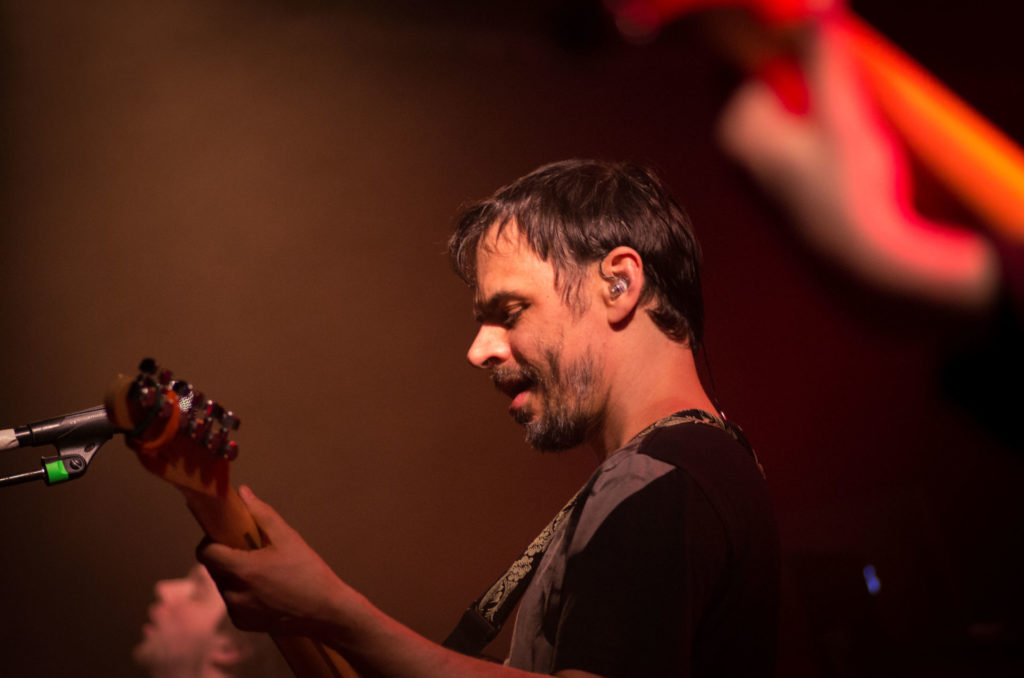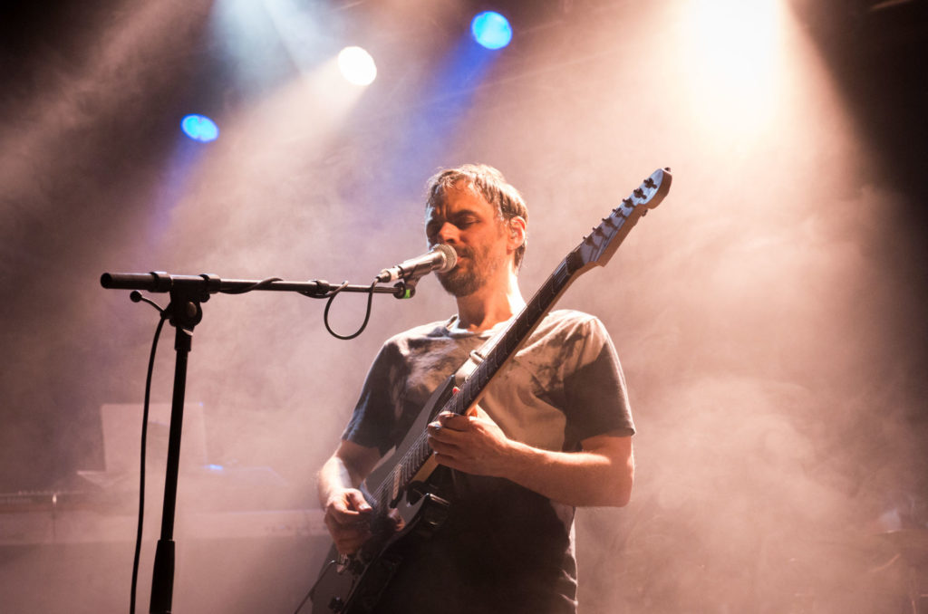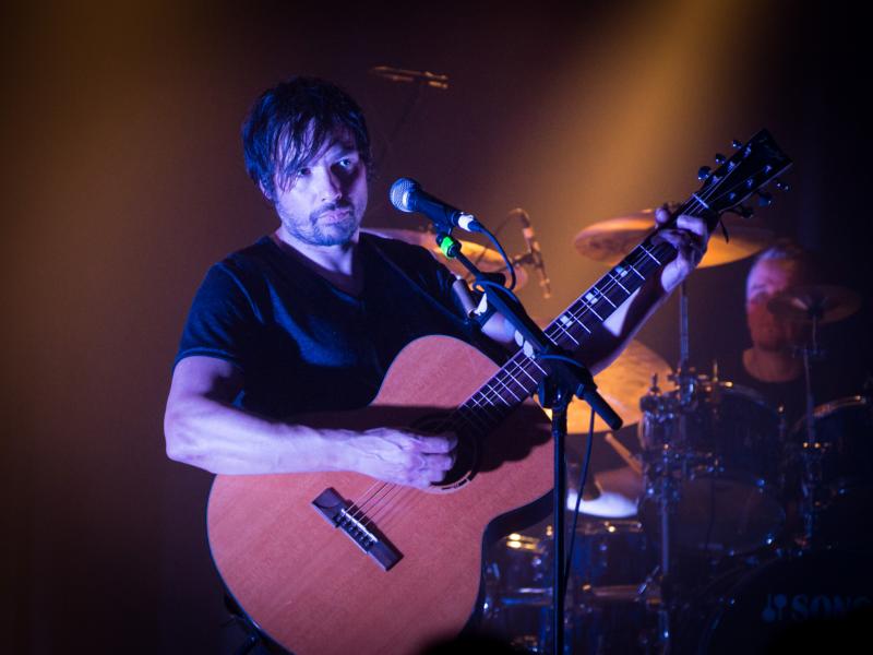 Nach erfreulich kurzer Umbaupause fand sich besagter Darran wieder auf der Bühne ein – da er als Live-Gitarrist das Set von The Pineapple Thief ebenso bereicherte, wie er das schon bei den Aufnahmen zum aktuellen Ananas-Diebstahl "Your Wilderness" getan hatte. Dies erlaubte Komponist, Sänger und Gitarrist Bruce Soord, 'Tear You Up' mit akustischer Gitarre anzugehen. Nach einem kurzen Schwenk zu 'The One You Left To Die' (von "Magnolia", 2014) wurde bereits wieder "Your Wilderness" gewürdigt – und gleich mit dem vermutlich allertraurigschönsten Track davon, 'No Man's Land'. Apropos traurig, da sind wir ja noch eine Erläuterung schuldig – für einige Anwesende war ein ausgesprochener "Star" und Glücksfall der Tour, dass Gavin Harrison (King Crimson, Porcupine Tree) mit von der Partie war – extra dafür waren die ursprünglich kommunizierten Europatournee-Termine wieder abgesagt worden. Nun stand also sein beeindruckendes Kit in der hinteren rechten Bühnenecke, und Gavins so elegantes wie kraftvolles Spiel trieb 'The One...' in ungeahnter Weise voran.