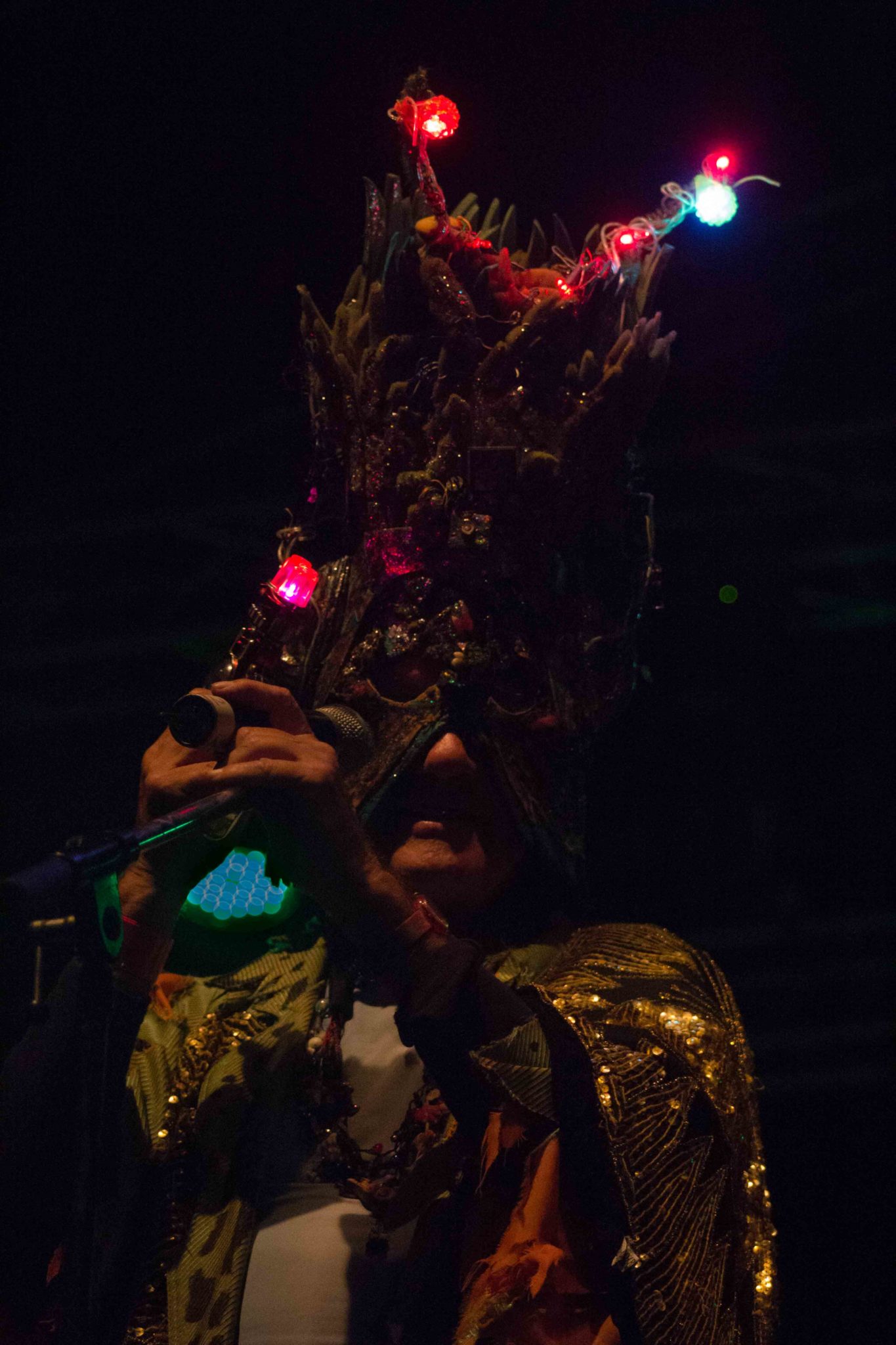 Im völligen Dunkel der Bühne kam Arthur Browns in jahrelanger Arbeit aufwendig gefertigter Lichtumhang besonders gut zur Geltung.