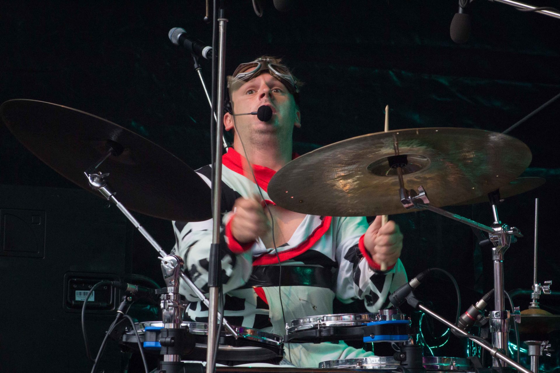 Jack Dupon, vier französische Freaks sondergleichen (hier: Arnaud M’Doihoma) eröffneten am frühen Freitagabend das Finki Open Air 2017. Einen besseren Auftakt hätte man sich kaum wünschen können. Komplex, progressiv, enorm einfallsreich und herrlich schräg.