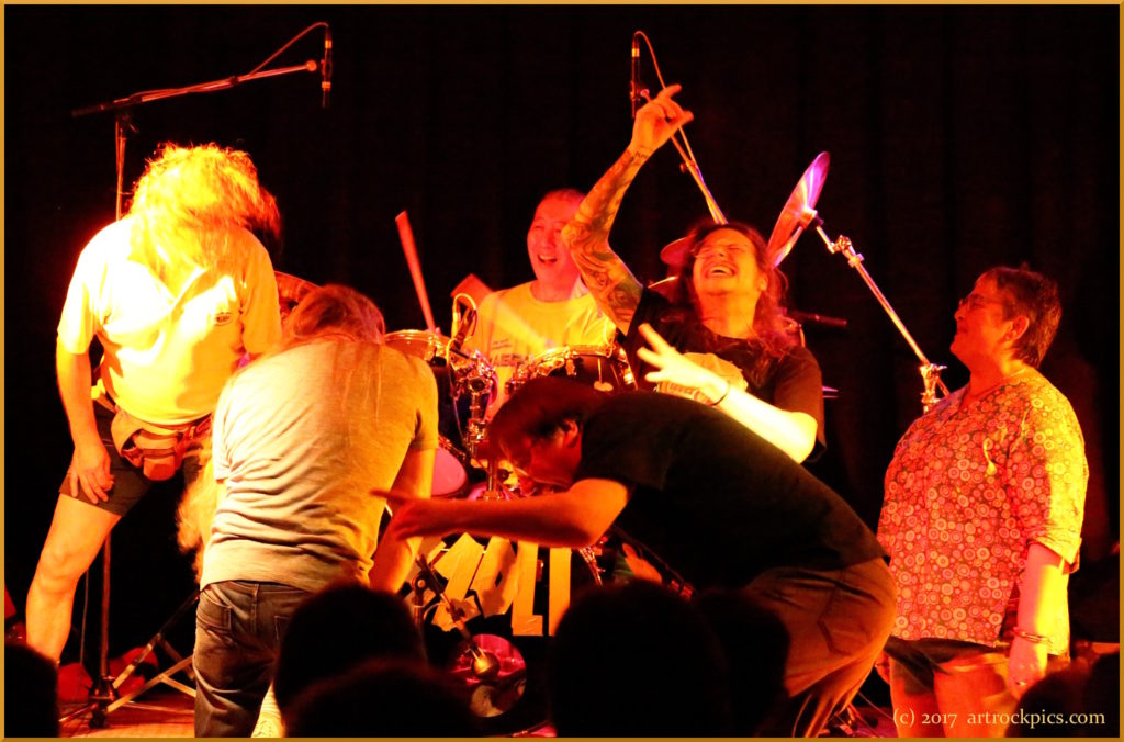 Hernach wechselt der Drummer (der auch herrlich im Falsett singen kann) eben mal so das Instrument mit der Keyboarderin. Mit den befremdlichen Wiederholungen haben es die Amis einfach. Das nächste Stück wird angesagt mit "eigentlich ist es ein Sakrileg, dass wir dieses Stück diesmal nur einmal spielen". Tatsächlich aber wird genau diese Ansage nach wenigen Takten Musik wiederholt. Und noch einmal. Und noch einmal…