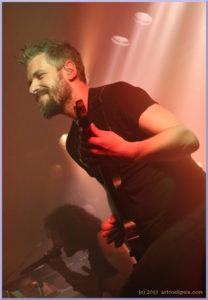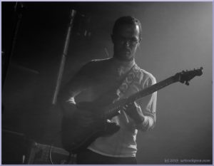 Die Zweitband des Bent-Knee-Gitarristen kam in Sechserbesetzung (2x Gitarre, Bass, Schlagzeug, Keys, Violine) und legte mit einem wilden Wechsel aus Zappa-artigem Jazzrock, ruhigen Passagen und Punk-artigen Eruptionen los. Auch der Sprechgesang von Ben Levin weckte Zappa-Assoziationen. Nach dem ersten Stück schaltete die Band ein bisschen zurück, brachte fast balladenartige, von akustischen Sounds getragene Stücke, die durch den Gesang von Bassistin Jessica Kion richtiggehend emotionale Schönheit entfalteten. Ein bisschen zulegen kann die Band in Sachen Bühnenausstrahlung: während Levin und Kion zwar etwas zurückhaltend, aber immerhin erkennbar bei der Sache waren, wirkte vor allem der zweite Gitarrist Tim Doherty, als habe man ihn beim Robotik-Labor des MIT geborgt. Die musikalische Vielseitigkeit zeigte dennoch Wirkung: war das Publikum an Anfang noch eher verhalten, gab es nach einer halben Stunde doch freundlichen Applaus und einige neue Fans.