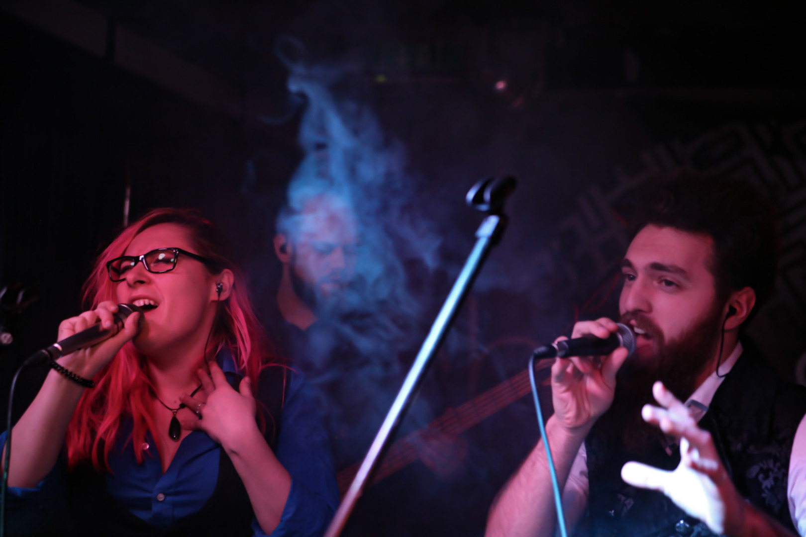 Weiterhin beeindruckend, dass der an dem Album noch nicht einmal beteiligte Sami mal eben sämtliche männlichen Gesangsparts des Abends übernimmt und wirklich zum Leuchten bringt. Und wie er und die ebenfalls vollends überzeugende Ophelia mit den längeren Instrumentalparts umgehen – in Abwesenheit eines Künstlereingangs hüpfen sie einfach von der Bühne ins Auditorium und bangen gemeinsam mit uns allen.
