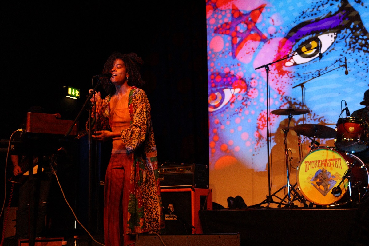 Mal hypnotisierend und mal mächtig schwer bewegte sich das erfrischende Gemisch aus Blues, Stoner, Psychedelic und Anmut durch den Raum. Isabelle Bapté sang, tanzte, spielte Flöte, Regenmacher und Synthie und zog den Konzertraum damit in ihren Bann wie eine Schlangenbeschwörerin. Ohne Zweifel war mit dem Auftritt von Sound Of Smoke ein fantastischer Einklang ins Festival gelungen. Besonders die Lieder vom neuen Album "Phases", welches Anfang 2023 bei Tonzonen Records erscheinen wird, sorgten für Begeisterung.