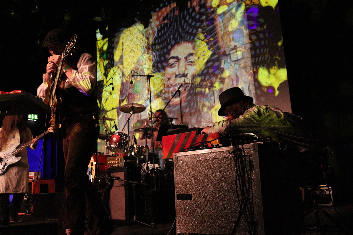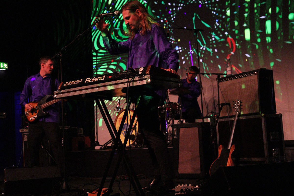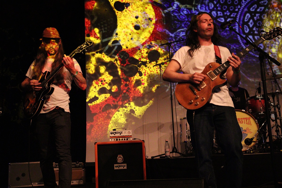 Und dann waren sie da und ließen die Party eskalieren. Zu fünft nahmen die Musiker aus der Domstadt die Bühne in Beschlag und versorgten das Publikum mit volltönendem Blues Rock, der vor mitreißender Psychedelik und betörendem Kraut triefte. Der Retrosound schwappte wie eine Welle der Euphorie von der Bühne herab und ergoss sich in einem Meer aus Tanz und Bewegung.