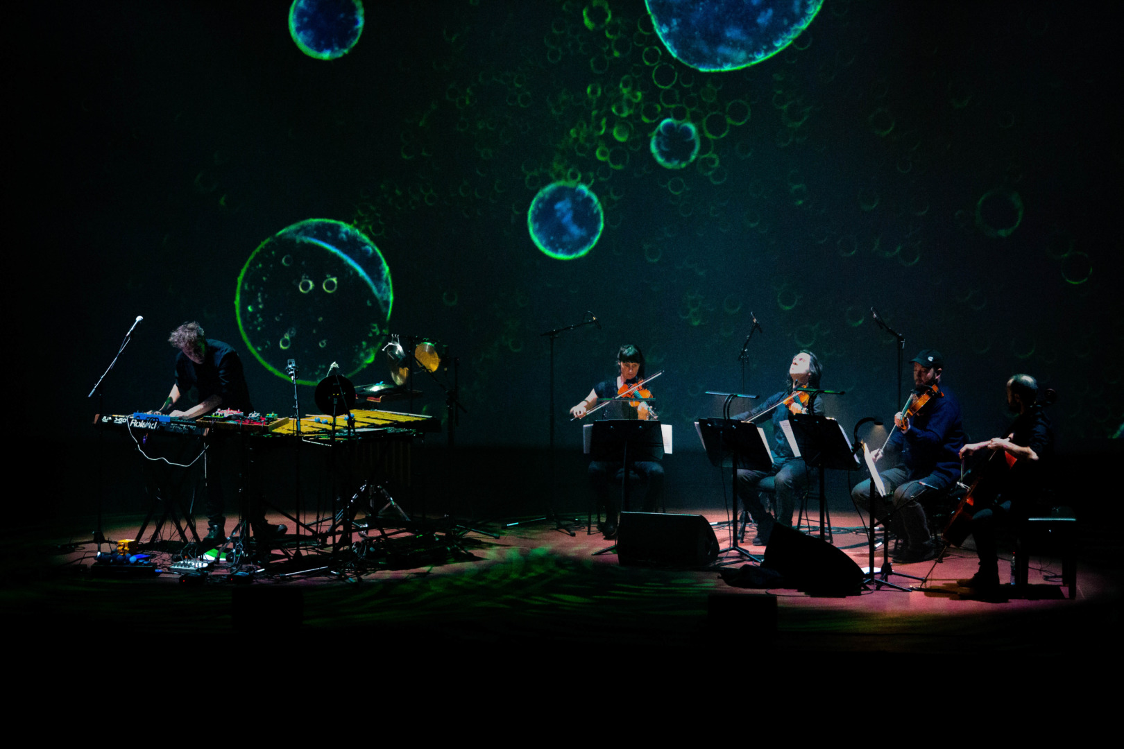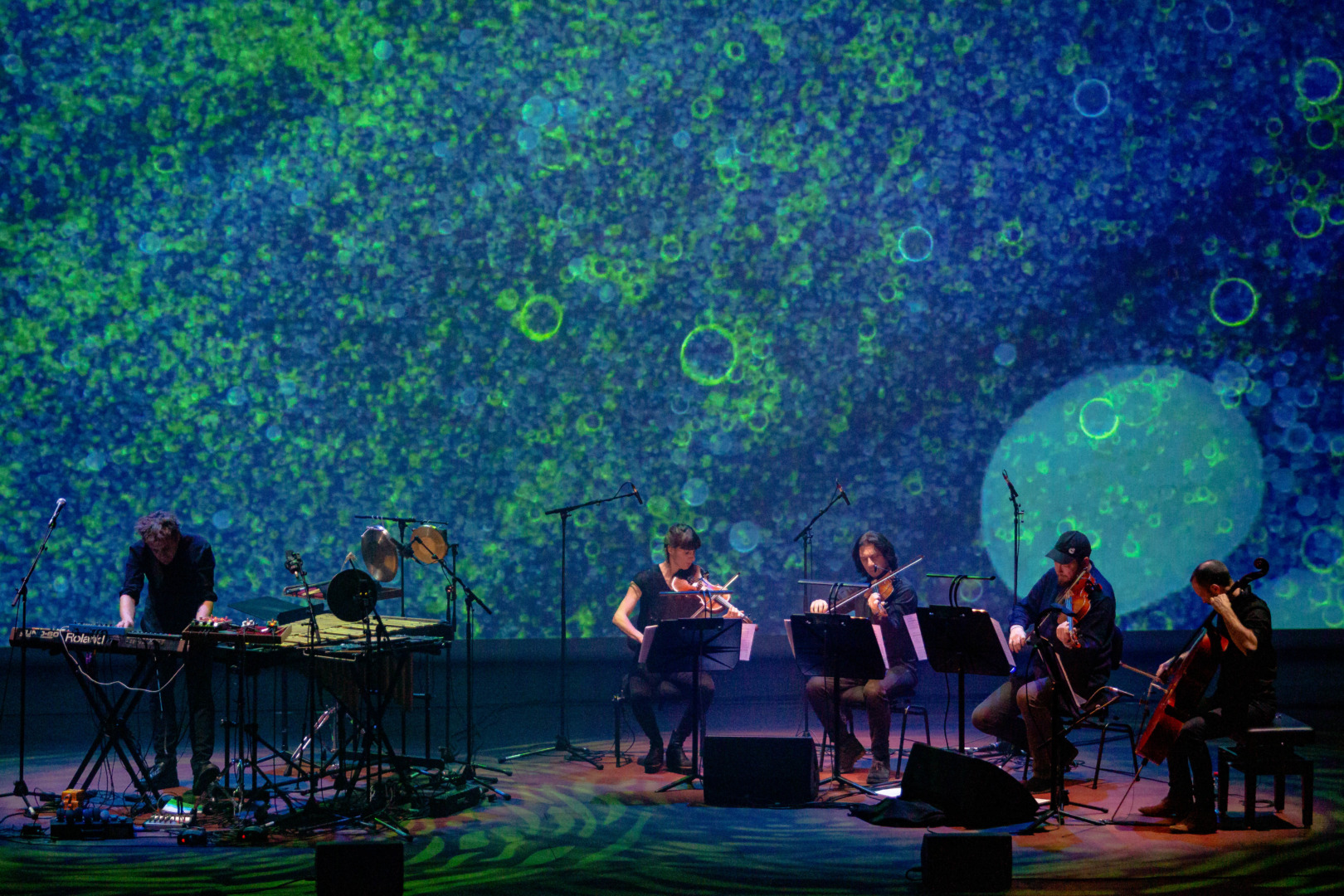Nach diesem Einstand war es dann endlich an der Zeit, dass Echo Collective zu Pascal auf die Bühne kamen, um tiefer in die Klangwelten "Luna"s einzutauchen. Doch bekam das Klangbild im Folgenden nicht nur durch die vier Streichinstrumente einen 'postalisch'-experimentellen Touch, auch die vermehrte Verwendung von Synthesizern wie Organelle und Juno ließen die Musik Schumachers komplexer erscheinen. Wobei komplex in diesem Fall keineswegs verkopft bedeutete. Denn was im Auditorium erschallte, war Musik, die in erster Linie ganz tief in die Psyche eindrang und dort zu tiefster Entspannung führte.
