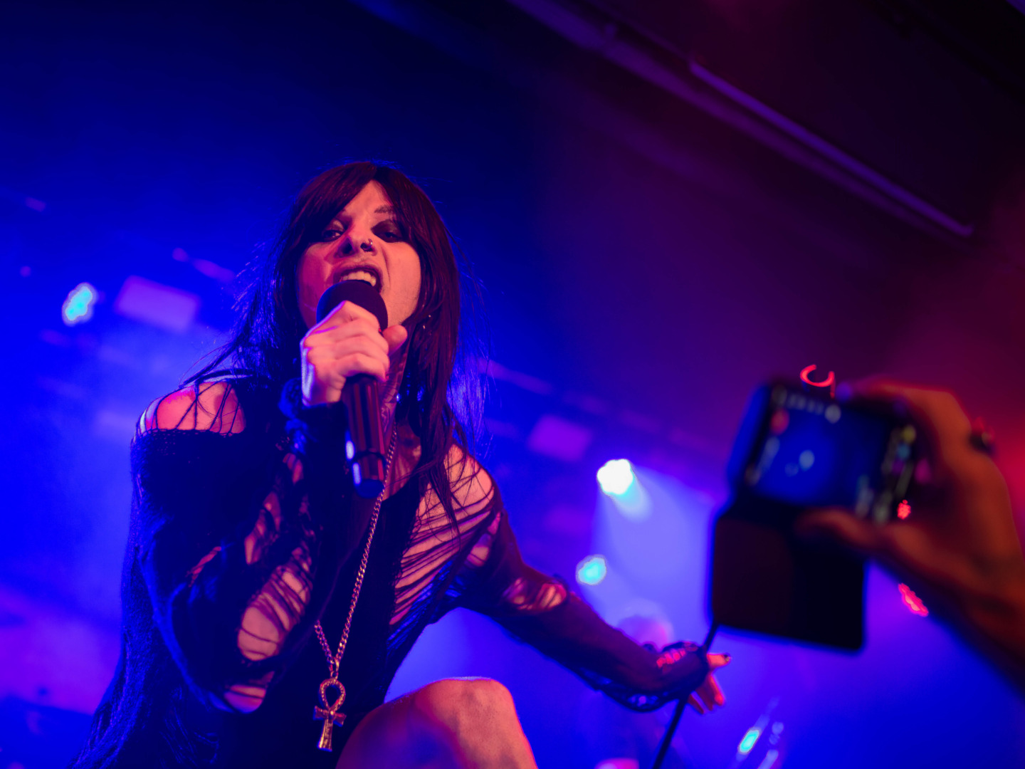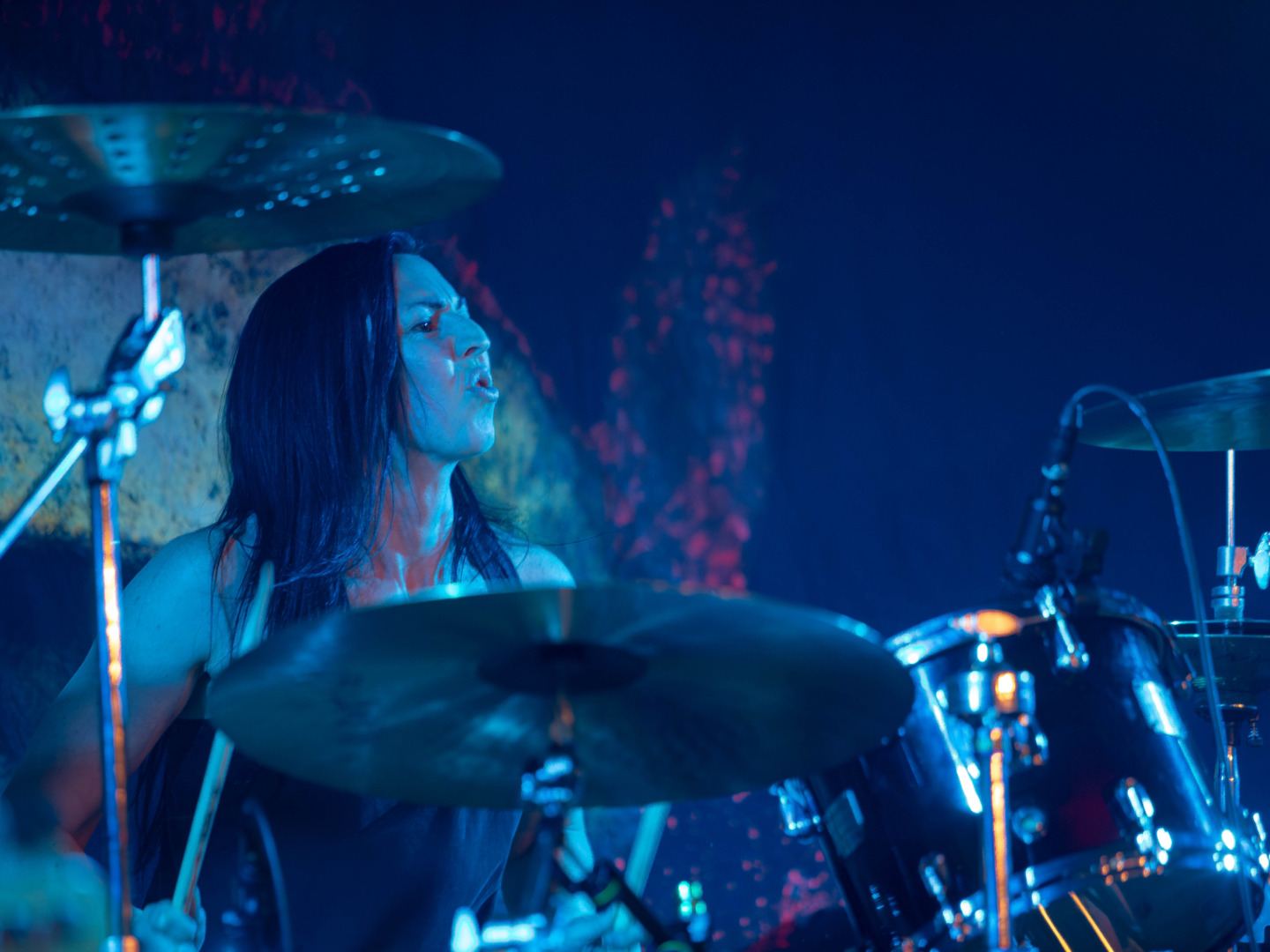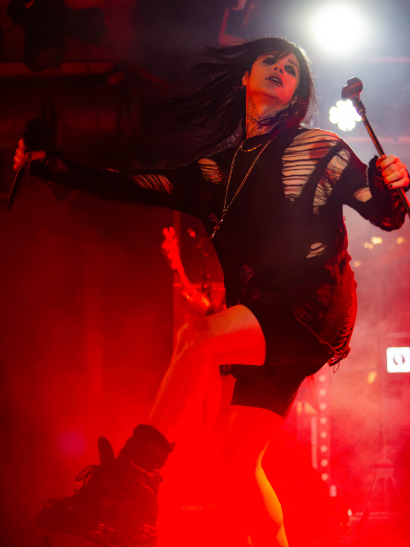 Mina Caputo gewesen die bestens aufgelegt und zu Späßen bereit immer wieder den verbalen Kontakt zu ihrem Publikum suchte. Auflockerungen, die immer eine Möglichkeit zum Verschnaufen boten und die die Bande zum Publikum festigten, sodass die folgenden Stücke noch intensiver miterlebt werden konnten.