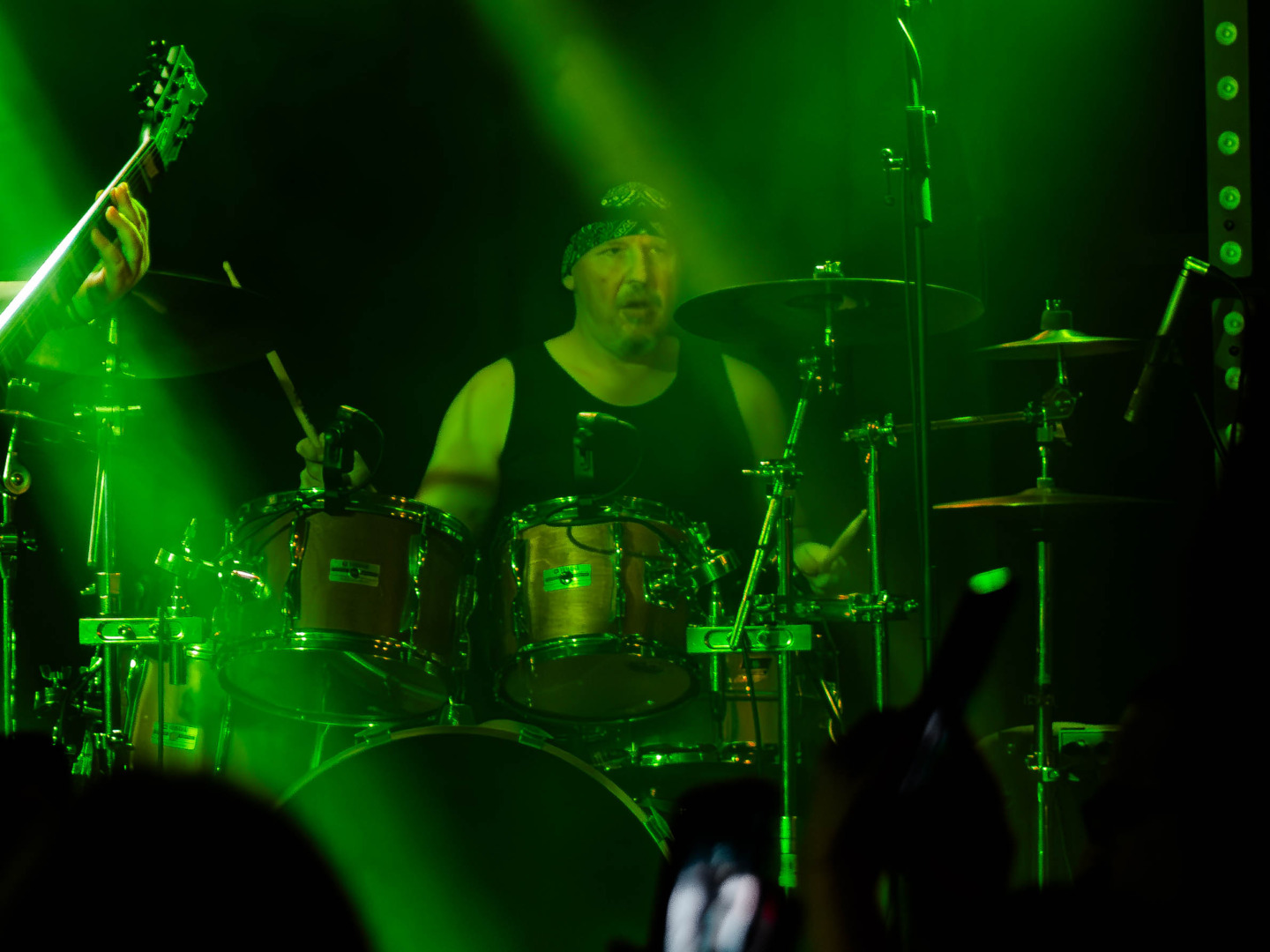 Überraschen konnte die Band im Folgenden, als sie 'Method Of Groove' mit dem Riff aus Panteras 'Walk' einleitete. Vielleicht nicht der stärkste Song auf 'River Runs Red', aber an diesem Abend doch wirkiungsvoll in Szene gesetzt, denn vor der Bühne schien das Publikum kollektiv wieder sein Alter vergessen zu haben. Die Anzahl der Teenager im Publikum konnte man wohl an einer Händen abzählen. Alt-Herren-Musik eben.