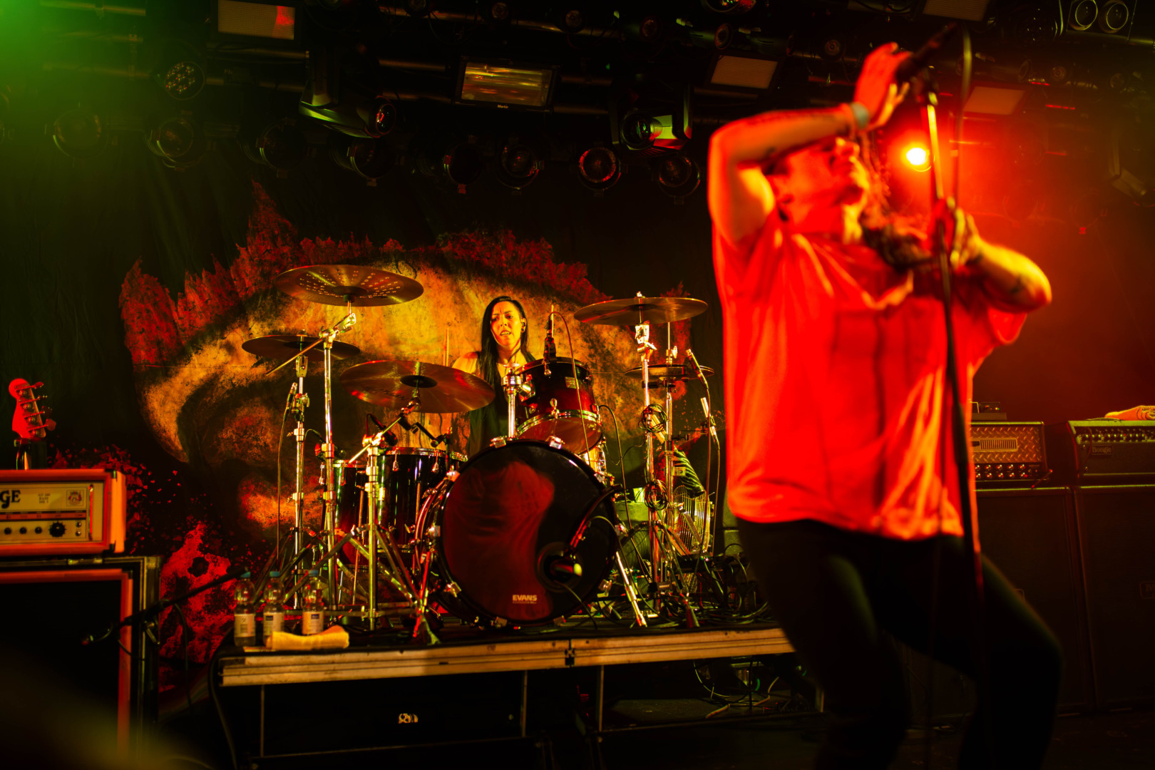 ...denn Life Of Agony gingen von der ersten Sekunde an in die Vollen indem sie Aschaffenburg mit dem "River Runs Red"-Klassiker 'Through And Throuh' begrüßten: Mehr oldschool East-Coast-Hardcore waren Life Of Agony wohl bei keinem anderen Lied ihrer Diskografie gewesen. Und auch 31 Jahre nach erscheinen dieses Stückes konnte man erleben, warum dies so ist, denn die pure Energie des Stückes, die treibenden Rhythmen, Mina prägnante Stimme sowie die punktgenau akzentuierten Shouts von Bassist