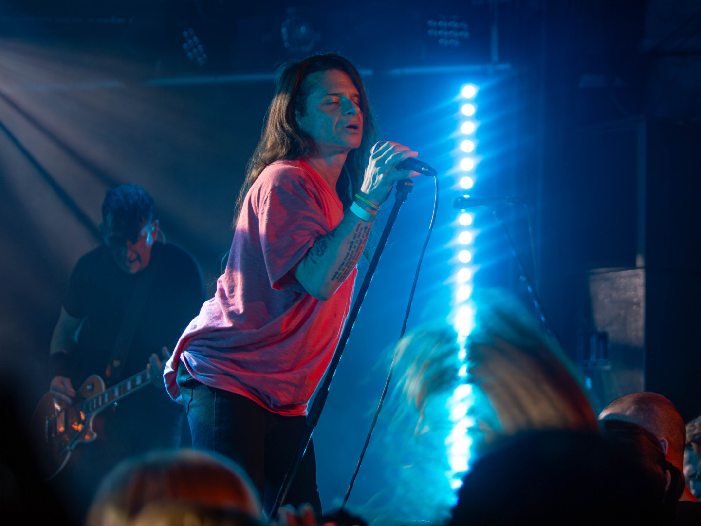 Keith Caputo trug, doch trübte dies keinesfalls die Wirkung, die ihre Vocals auf das Publikum entfalteten. Eine Stimme, die übrigens sehr gut zu der doch sehr groove-lastigen Grunge-Metal-Ausrichtung der letzten Jahre passt, wie man beim folgenden 'Scars' hören konnte. Es blieb das einzige Stück des Abends, das nach der ersten Wiedervereinigung der Band entstanden war, was zur Freude all jener Besucher gereichte, die die Band im neuen Jahrtausend aus den Augen verloren hatten. So folgten im weiteren Verlauf des Konzertes also nur Stücke der ersten drei Alben, was bedeutete, das ein Hit den nächsten jagen sollte. Wäre da nicht