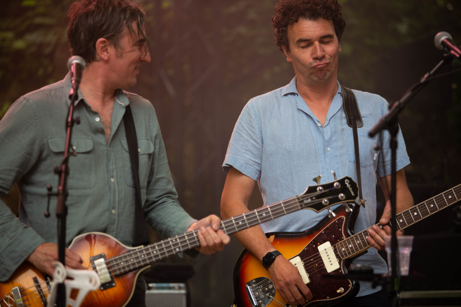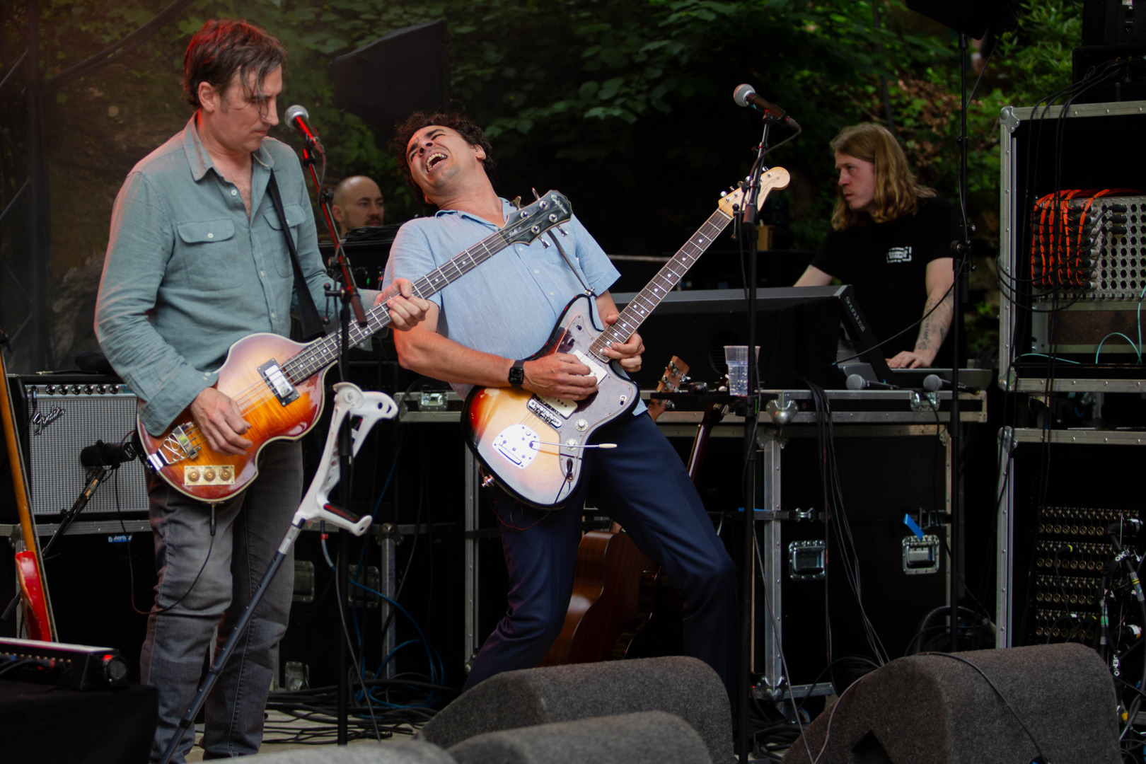 Es ging also hochtechnisch weiter. Beziehungsweise erstmal mit technischen Schwierigkeiten, because "Jake's guitar is fucked up somehow". Und natürlich mit Warten auf die Fehlerbehebung. Petrus nutzte die Spielpause, um sich mit Regen ins Gespräch zu bringen. Doch die lindgrün gewandeten Festival-Helfer (wohl keiner unter 65) verteilten binnen Sekunden Gratis-Regencapes an alle auf das Himmelsnass nicht vorbereiteten Zuhörer. Die somit auch erstmal damit beschäftigt waren, sich die Dinger überzuziehen.