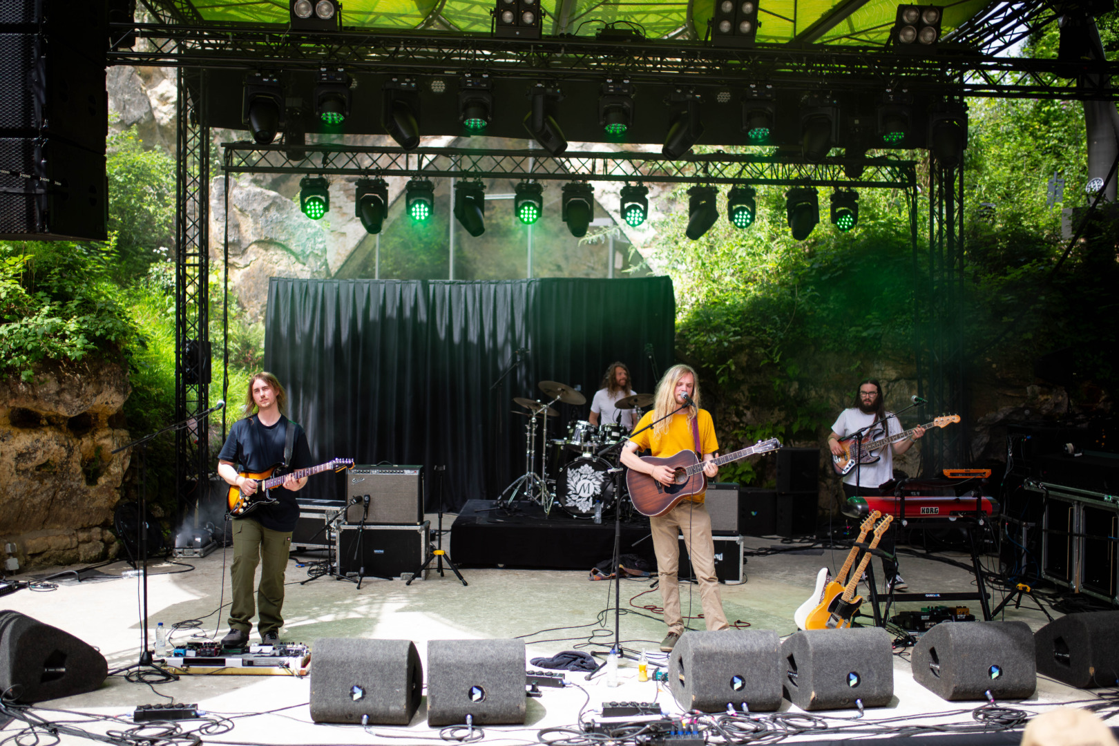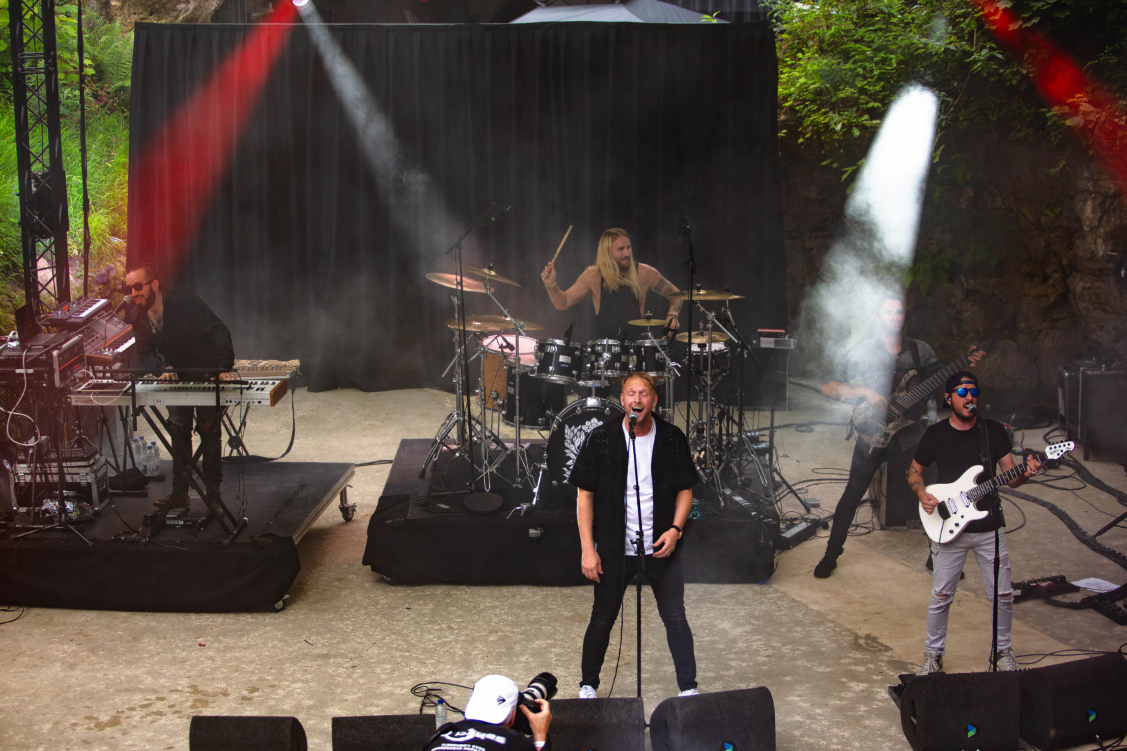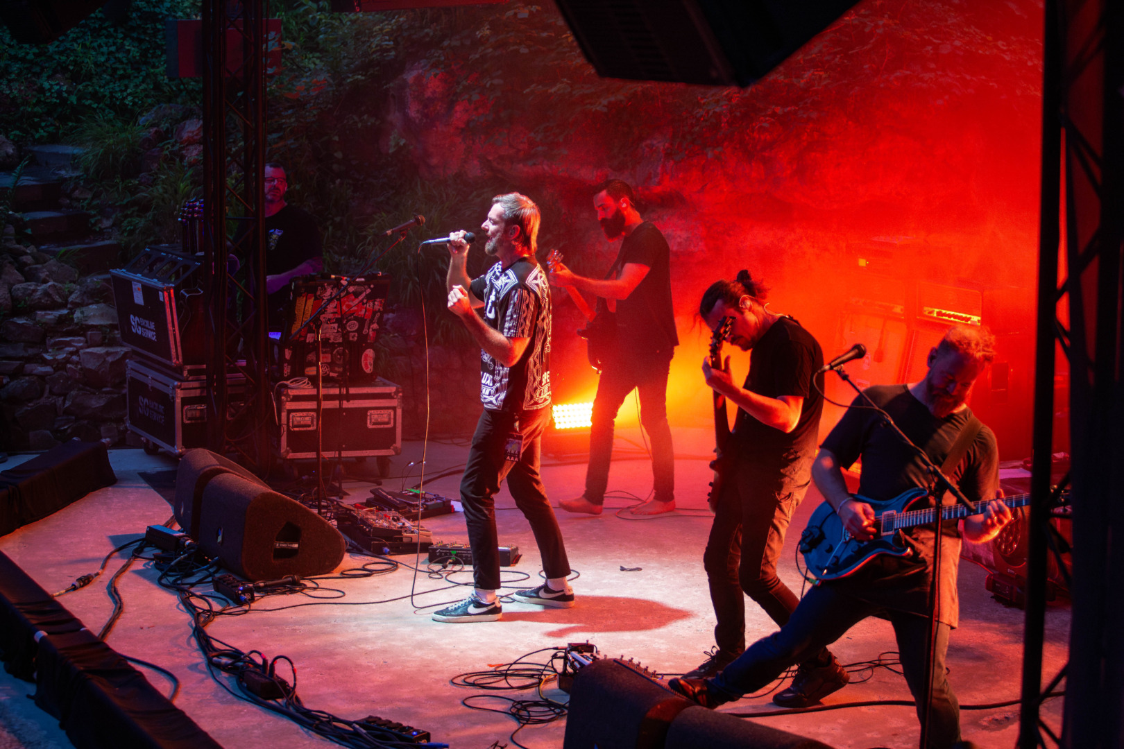 21:30 Uhr. Und so was Ähnliches wie Karnevalsstimmung kommt mit Everybody's Darlings from Perth, Western Australia in Valkenburg auf. Ein erstaunlicherweise zahlenmäßig deutlich reduziertes Publikum (MSP, das Prog-Festival der sanften Klänge?) erlebte einen von Melodik, Deep Drop Tunings und vor allem starkem Gesang (Iann Kenny) geprägten Auftritt, während die Lightshow die Felsen hinter der Bühne in die Red Rocks der Niederlande verwandelte.