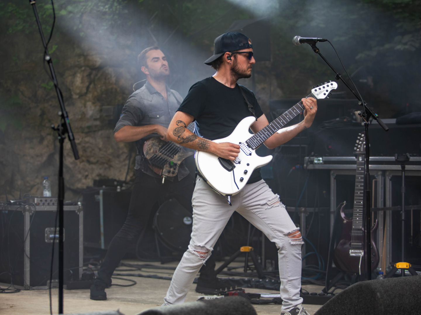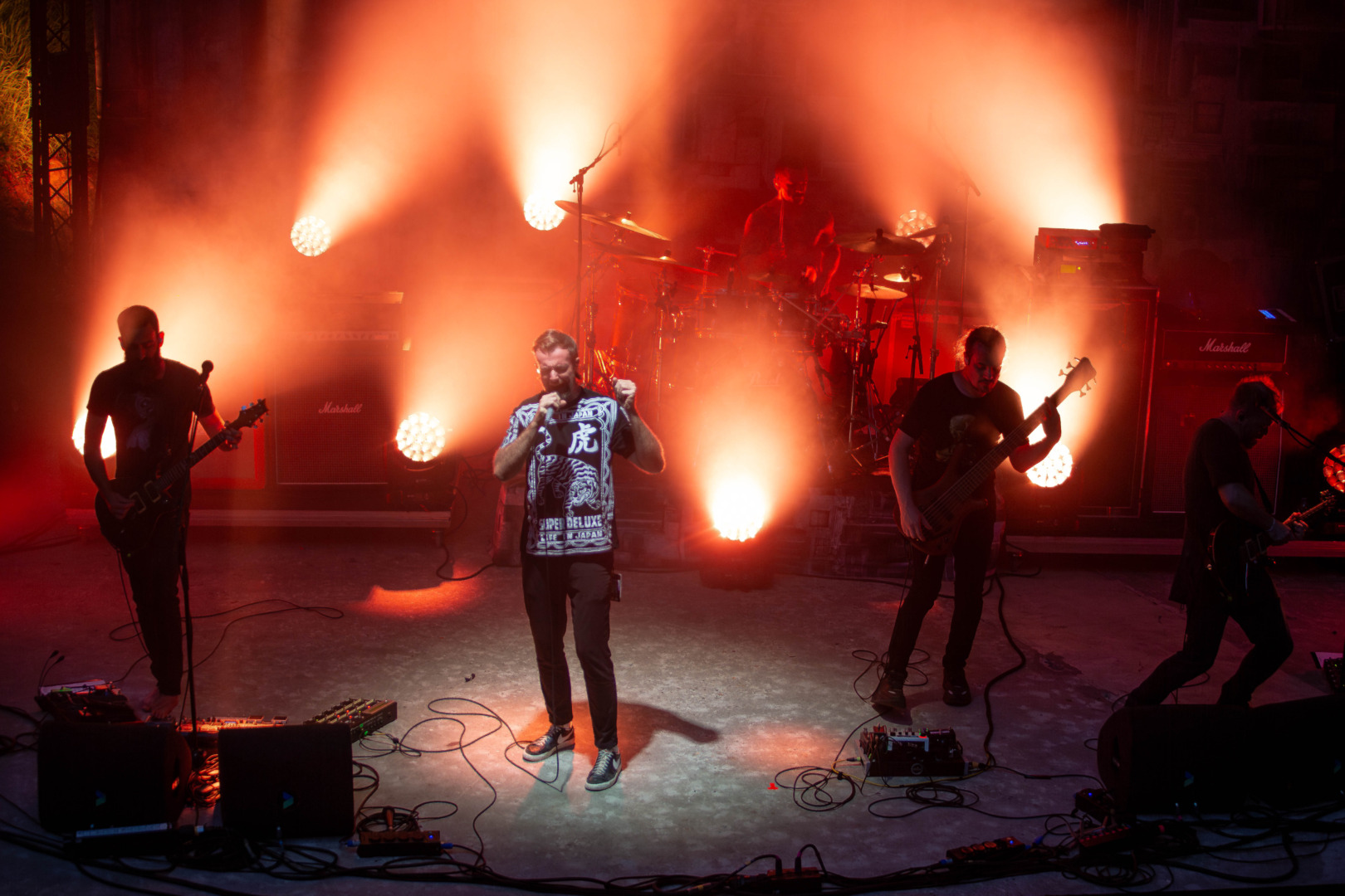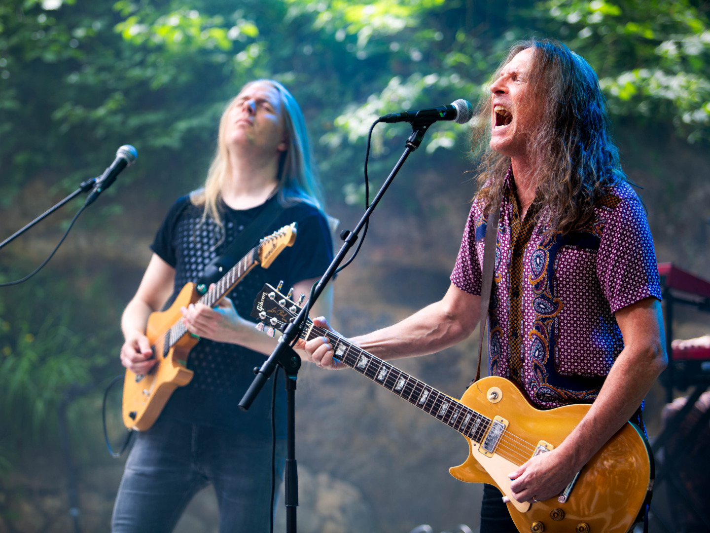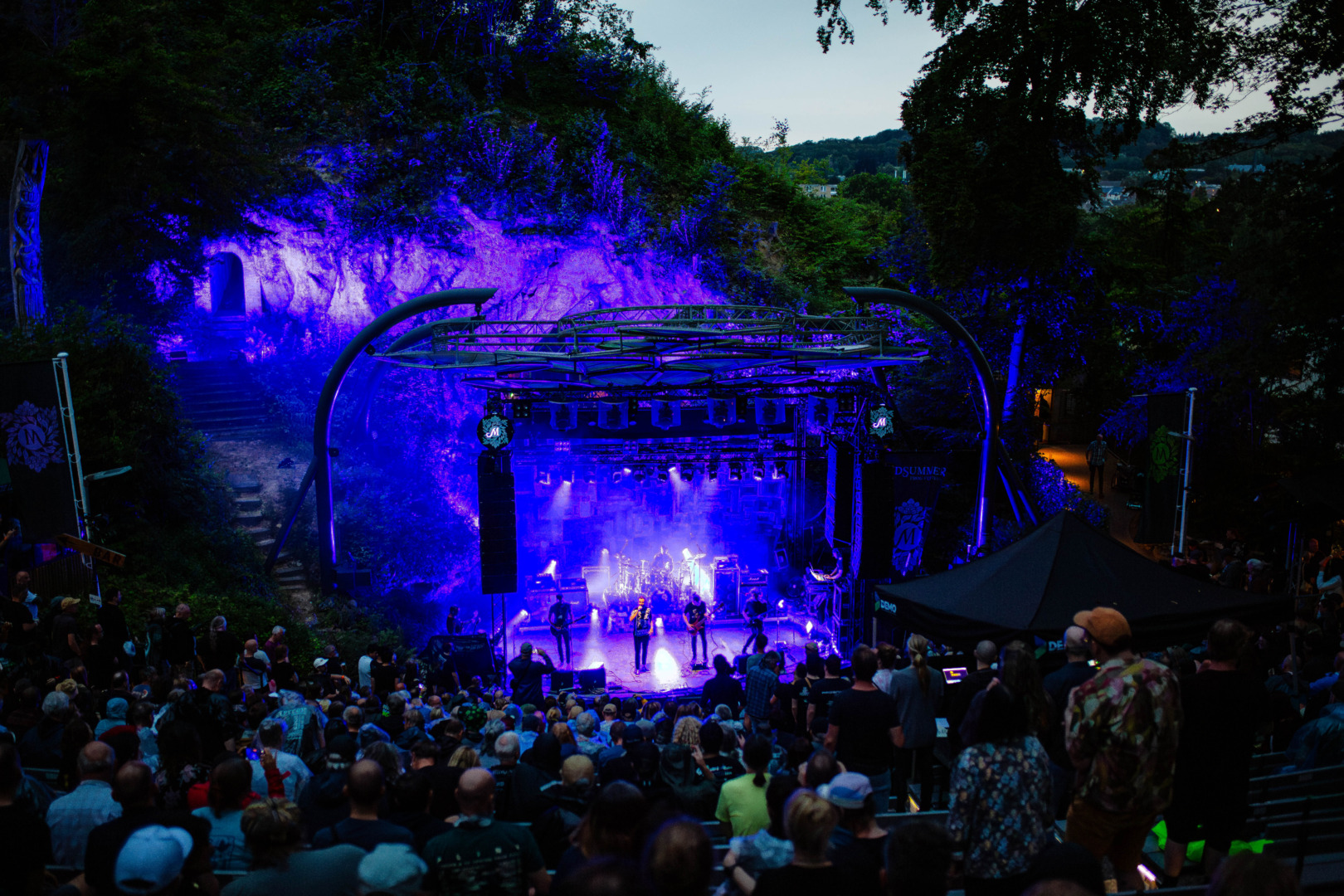 21:30 Uhr. Und so was Ähnliches wie Karnevalsstimmung kommt mit Everybody's Darlings from Perth, Western Australia in Valkenburg auf. Ein erstaunlicherweise zahlenmäßig deutlich reduziertes Publikum (MSP, das Prog-Festival der sanften Klänge?) erlebte einen von Melodik, Deep Drop Tunings und vor allem starkem Gesang (Iann Kenny) geprägten Auftritt, während die Lightshow die Felsen hinter der Bühne in die Red Rocks der Niederlande verwandelte.