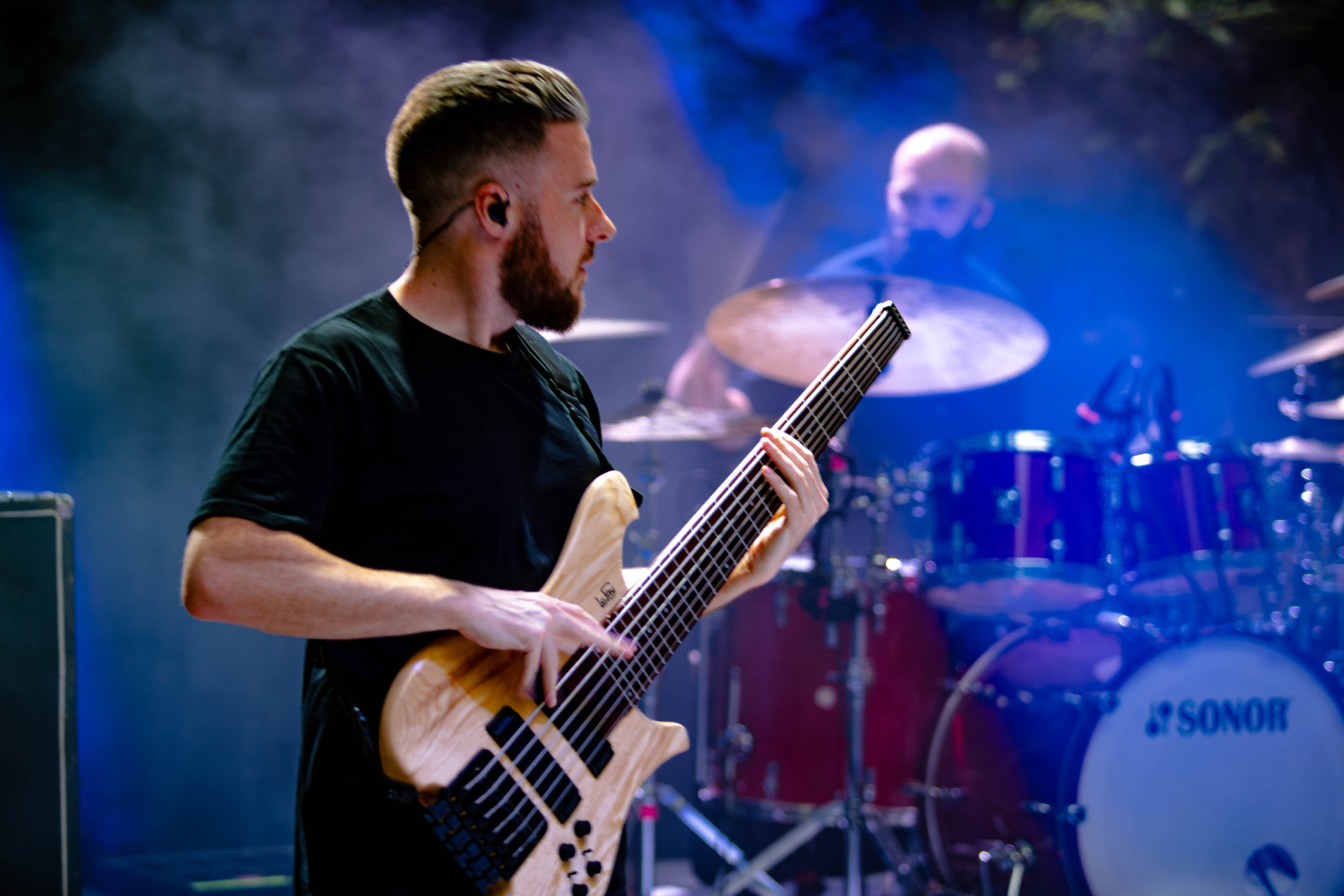Irgendwann war die Axt des Zweitgitarristen Jake Howsam Lowe dann auch endlich mal ent-fucked. Und mit einem Insekten-Summgeräusch hob nun der MSP-Auftritt mit den abgefahrensten Taktarten (29/16?) an. Das Gitarrenspiel ist so elegant wie es virtuos ist. Im direkten Vergleich mit Temic wirkte das wie ein Ferrari Dino nach einer Big Block Corvette.