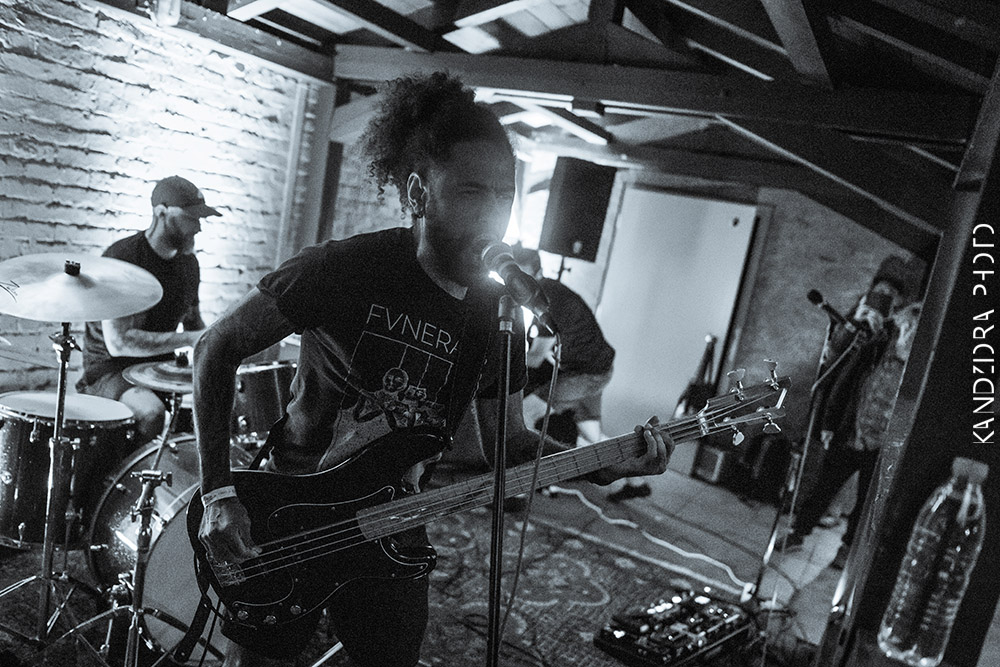 Da es diesmal, im Vergleich zum Vorjahr, beim Einlass Verzögerungen gab, kam ich nur einen kurzen Ausschnitt der sächsischen Jungspundis von Turbo Moses mit, die hochmotiviert ihren Stoner-/Sludge-Verschnitt mit viel Energie und Elan in die natürlich noch dünn gesäte Menge schleuderten - die Band hatte erst vor kurzem ihr neues Album "Desert Frost" veröffentlicht - und gemeinsam mit den Anwesenden ihren Spaß hatten. Ein Auftakt war somit gemacht.