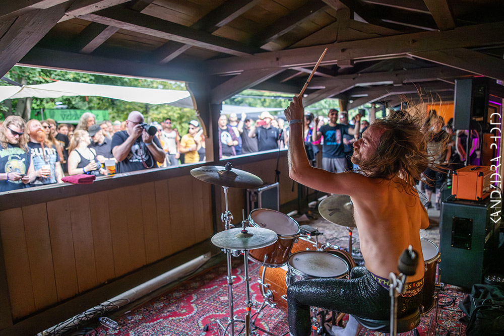 Sautrus aus Polen sind strange und der psychedelisch schräge Sound ließ live zum Glück viel Geradlinigkeit zu (Wie war das im Mittelteil? Die Schlussred.). Der Sänger sah aus wie ein entfernter Abkömmling von King Diamond (schmunzel), die Spielfreude und Begeisterung der Band war enorm, trotz kurzer Spielzeit von knapp 30 Minuten. Der Sänger ließ mehr als einmal dankbar verlauten wie glücklich er über die Einladung war. Extrem sympathischer Auftritt.