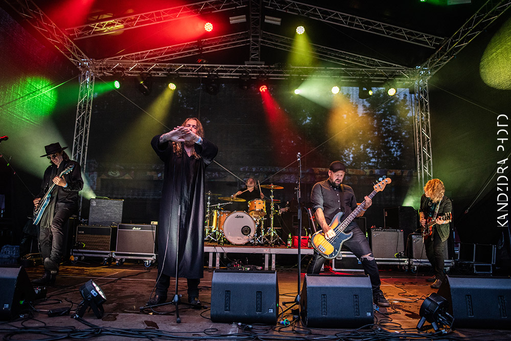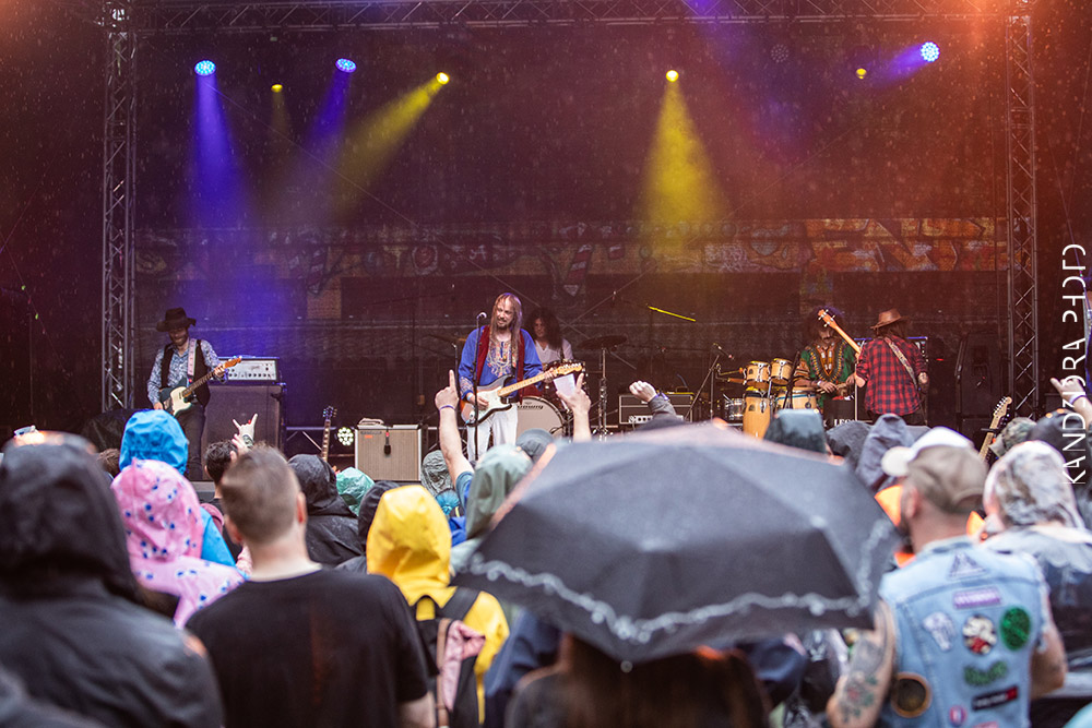 Zum Dauerregen viel passender folgten dem sommerlichen Jam von El Perro erstmal The Devil And The Almighty Blues mit nordisch dunklem, bluesigem Stoner/Doom/Heavy Rock. In schwarzer Optik und visuell generell sehr gut in Szene gesetzt zelebrierte die Band um Sänger Barde Arnt ein wahrlich dichtes, angenehm melancholisches und schweres Brett. Die Musik war unaufgeregt, hatte aber in jeder Note viel dunkle Leidenschaft inne und ging einfach in die Tiefe. Die Songs hatten Überlänge, wurden von gut aufeinander abgestimmten Gitarren mit viel bluesiger Schwere getragen und mit emotionaler Stimme geführt. Das war ebenfalls definitiv von Güteklasse A. Besonders der Gitarrensound war voller feiner Details und Dynamik. Definitiv was für Liebhaber.