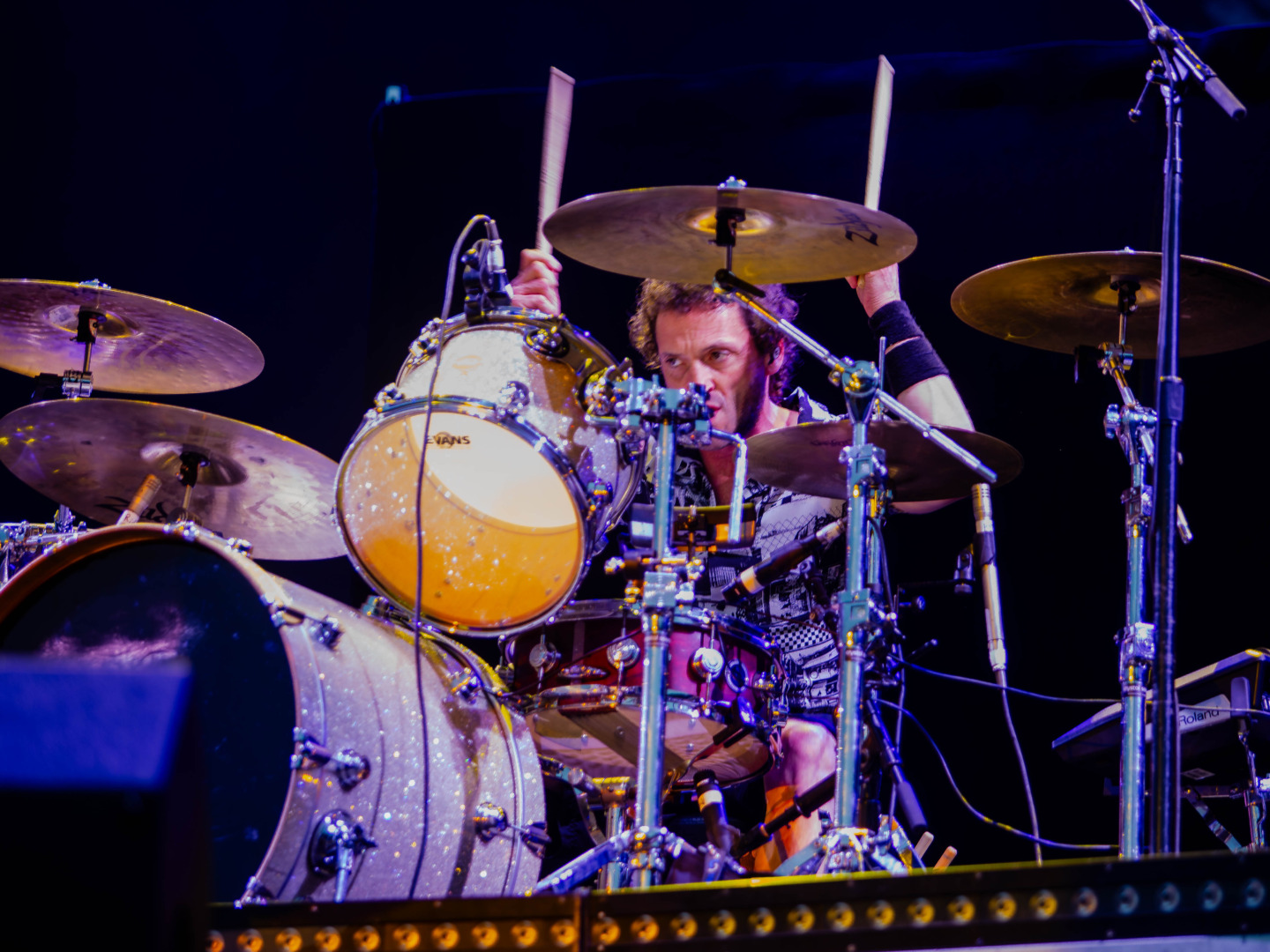 Mit 'Tease Me Please Me' und 'The Same Thrill' wurde es im Anschluss wieder deutlich rockiger, bevor sich die Zuschauer von Mickey Dee mit einem ausladenden Schlagzeug-Solo zu Jubelstürmen hinreißen ließ. Es folgte das sehr energetische 'Blackout' bevor man den Hauptteil mit 'Big City Nights' ausklingen ließ, zu dem das Publikum den Chorus lautstark mitsang.