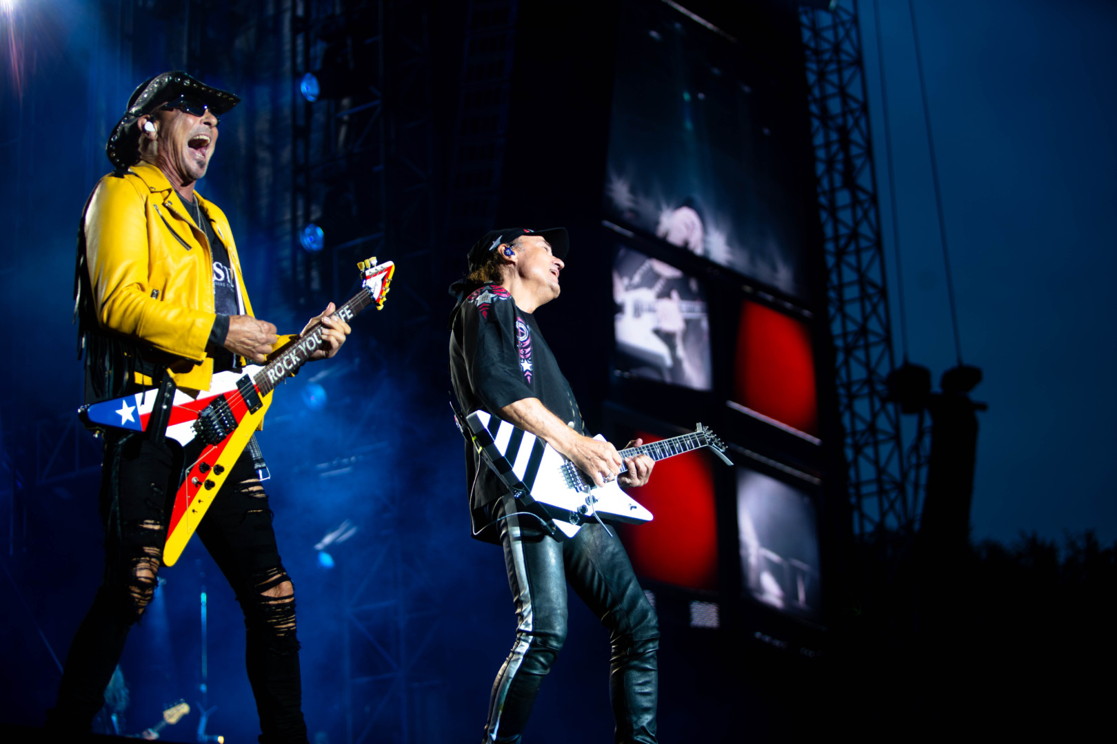 Die übergroßen Videobildschirme flackerten farbenfroh, der Sound stimmte, die Musiker waren bestens aufgelegt, sodass man aus der Ferne betrachtet kaum erahnen konnte, wie alt die Herren auf der Bühne tatsächlich waren. Dass die Setlist des Abends neben dem kompletten "Love At First String" auch die größten Hits der Band beinhaltete, wirkte sich natürlich auch nicht gerade negativ auf die Stimmung auf dem Kirchberg-Plateau aus. So wurde es mit dem unvermeidlichen "Crazy World"-Balladen-Doppelpack, bestehend aus 'Send Me An Angel' und 'Wind Of Change', dann auch nicht kitschig, sondern einfach wunderschön.