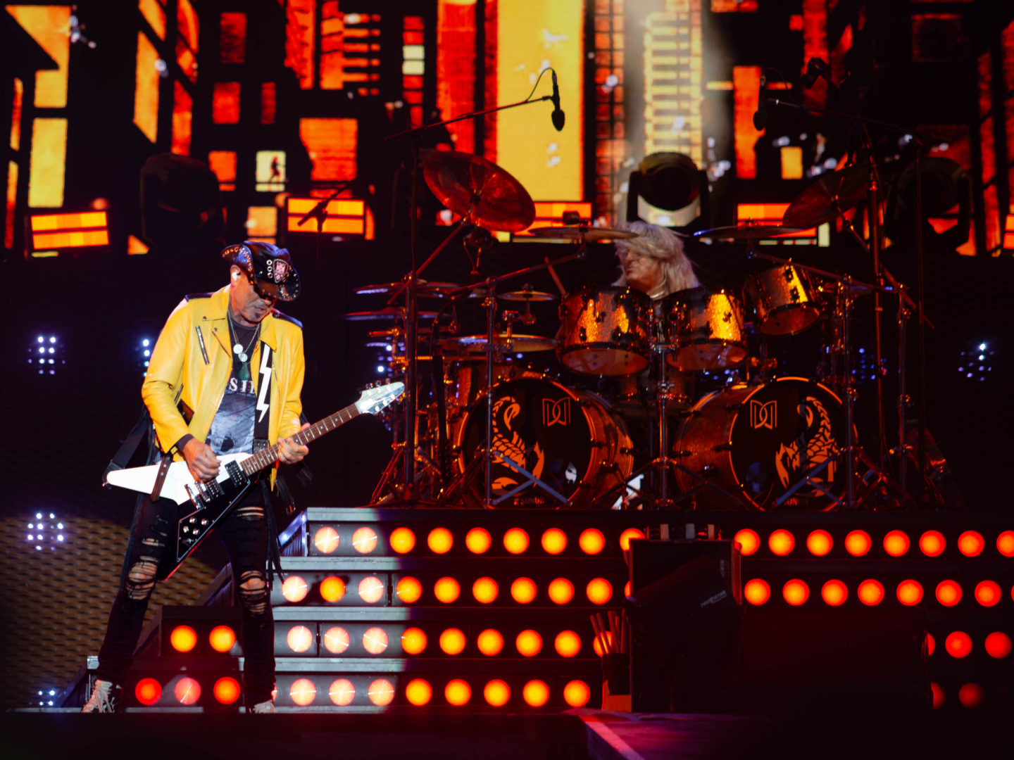 40 Jahre sind vergangen, seit "Love At First Sting" erschienen ist. Für manch einen mag das wie eine kleine Ewigkeit erscheinen, viele der Anwesenden waren zu diesem Zeitpunkt noch nicht geboren, doch wenn man in Betracht zieht, dass die Scorpions mittlerweile seit knapp 60 Jahren existieren, relativiert sich das Ganze schon wieder; erst recht, wenn man das Alter der Musiker betrachtet: Klaus Meine und Rudolf Schenker sind Jahrgang 1948, Matthias Jabs ist '55er Baujahr, Schlagzeuger Mickey Dee wurde 1963 geboren und selbst das Jüngste Mitglied, Bassist Paweł Mąciwoda, ist bereits 57 Jahre alt.