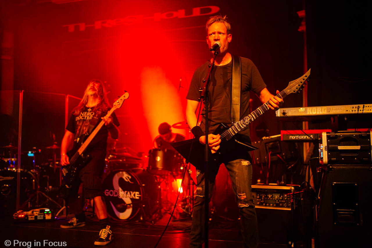 Mit Godsnake hatten Threshold auch eine deutsche Band als Support mit an Bord. Proggy oder experimentell war bei den Hamburgern allerdings gar nichts. Stattdessen gab das Quintett mit seinem 90s Melodic Thrash Metal ordentlich auf den Latz. Lange Haare, metaltypisches Gepose und ein Frontmann, der mit seinem Hamburger Schnack immer wieder den Kontakt zum Publikum suchte.