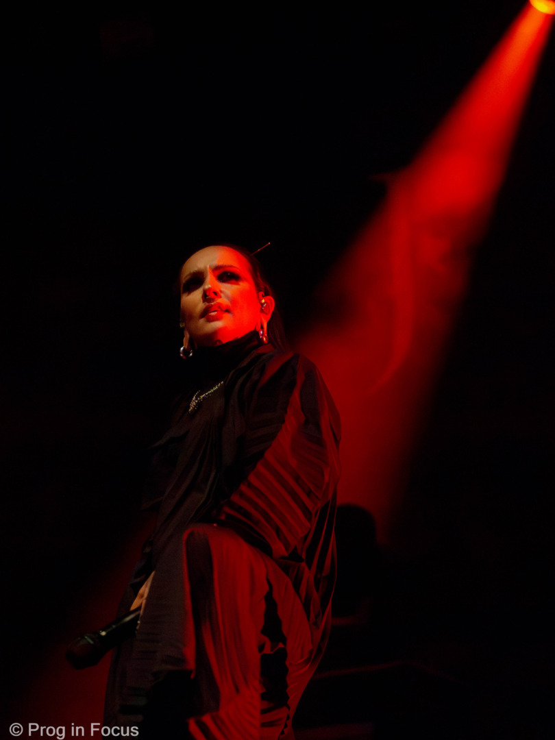 Wo zur Hölle kommen bei diesem zarten Wesen diese beängstigenden Geräusche her? Der Wechsel vom Gesang zum Growlen erfolgte so schnell und unvermittelt, dass man auf der Bühne vergeblich nach einem zweiten Sänger suchte.