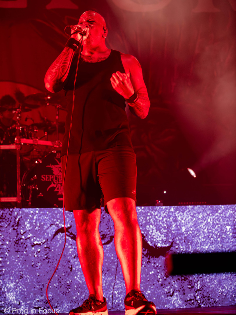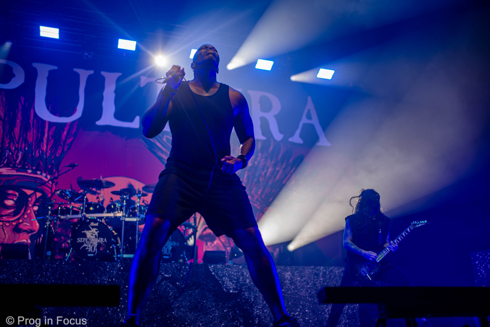 Nach vier Jahrzehnten im Musikzirkus präsentieren Sepultura derzeit das voraussichtlich letzte Kapitel ihrer Bandgeschichte: eine ausgiebige Tournee unter dem Titel "Celebrating Life Through Death" zum 40-jährigen Bestehen der Band aus Belo Horizonte. Eine Truppe, die zwar nicht wirklich Prog-relevant ist, aber dennoch, zumindest mit ihren Alben aus den frühen 90ern, die noch zusammen mit Max und Igor Cavalera eingespielt wurden, großen Einfluss auf die erweiterte Prog-Metal-Szene hinterlassen hat. Bands wie etwa Gojira, Dvne oder auch Jinjer würden ohne die Brasilianer heute wohl ganz anders klingen, falls sie überhaupt existieren würden. Apropos Jinjer: Den Ukrainern kam auf dieser Gastspielreise die Ehre zu, Sepultura zu supporten – und das an prominentester Stelle im Billing, vor dem Opener Jesus Piece (die wir leider verpassten) und der mittlerweile ebenfalls seit 40 Jahren aktiven Florida-Death-Metal-Legende Obituary.