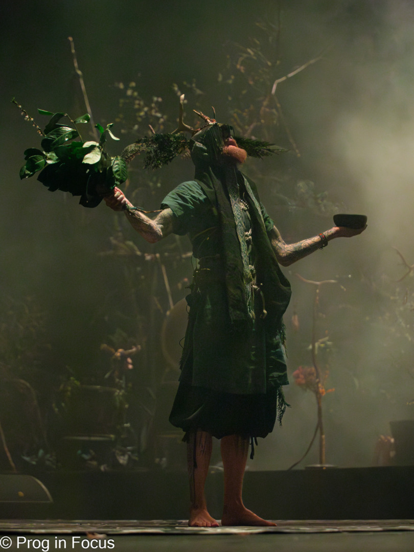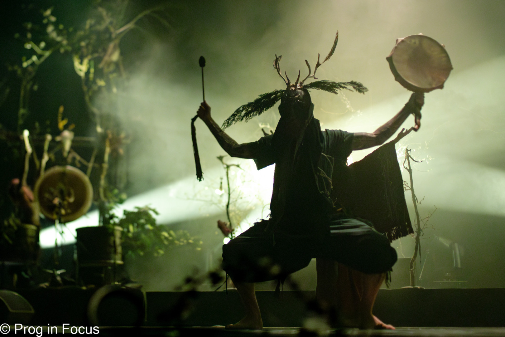 Doch bevor es mit der musikalischen Darbietung losging, stand erst einmal - wie wohl bei Heilung üblich - eine Eröffnungszeremonie auf dem Programm, zu der Schamane Kai Uwe Faust und einer seiner Mitstreiter die üppig im Tribal-Style dekorierte Bühne mithilfe von Duftschalen, Vogelfedern und Pflanzenwedeln in Nebelschwaden hüllten und so die Luft mit verschiedenen Duftnoten schwängerten.