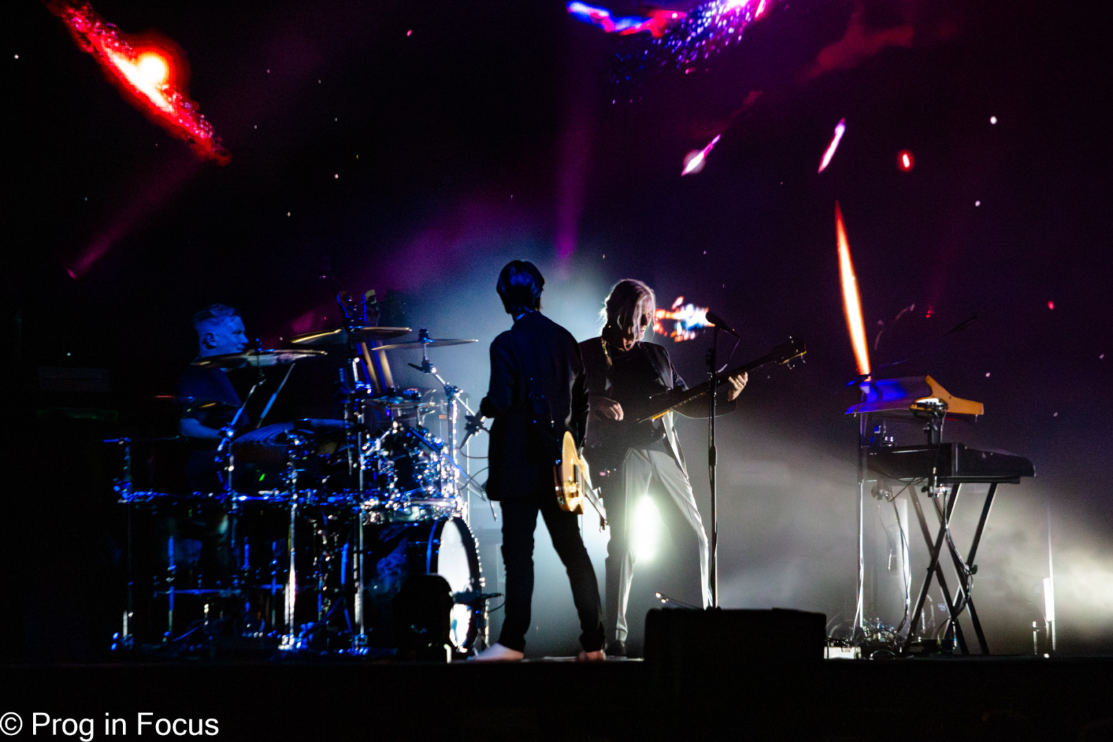 Besonders gefreut habe ich mich über ‚Harmony Korine‘ und das einzige Porcupine-Tree-Stück des Abends: ‚Dislocated Day‘. Die rasante Gitarre und die eindringlichen Vocals trafen direkt ins Herz. Ein kleiner Lautsprecherausfall an der Front während des Songs sorgte für ein Schmunzeln im Publikum. Es war charmant, aber keineswegs störend. Die Band ließ sich davon nicht beirren und spielte weiter.
