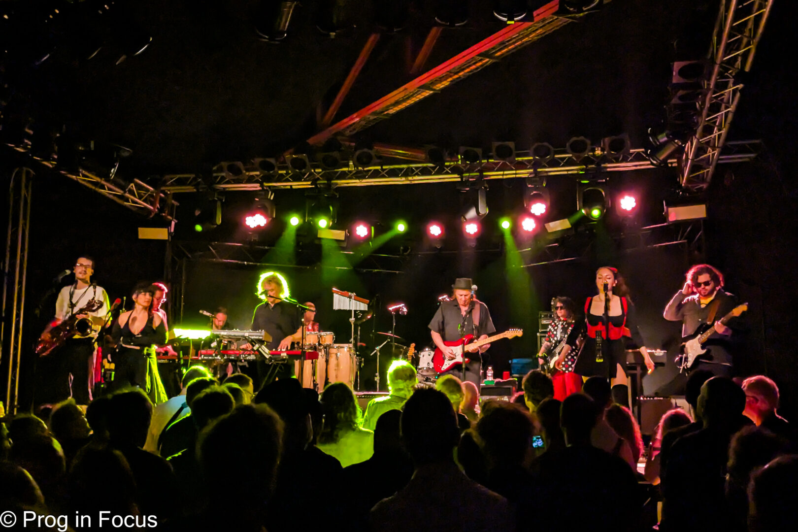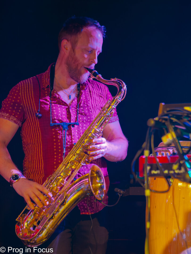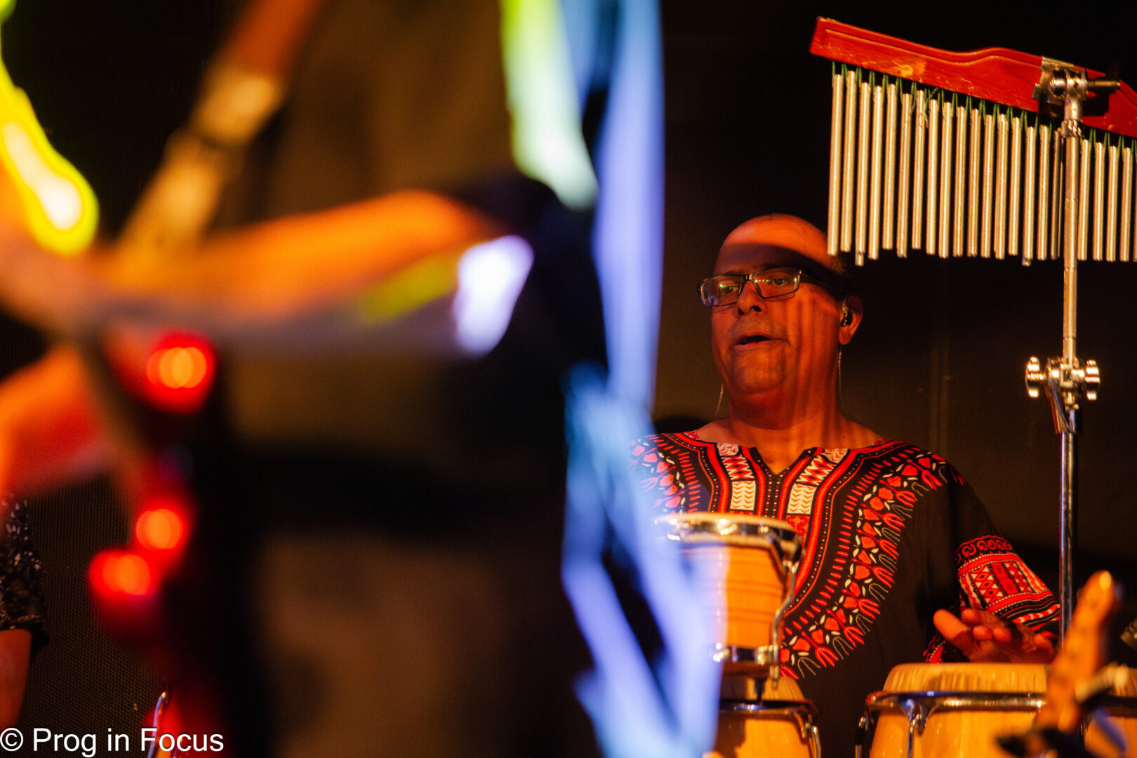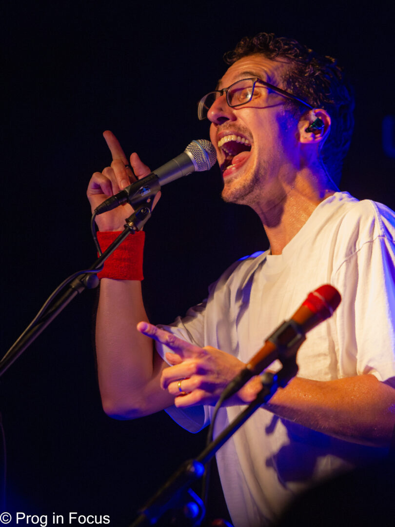 Adrian Belew in Köln im ausverkauften Carlswerk Victoria vor rund 1.600 Zuschauern auftraten, war das um gut ein Drittel kleinere den Atelier gefühlt höchstens zu drei Vierteln gefüllt. Schade einerseits – ob da bei der Promo etwas schiefgelaufen war? – andererseits aber auch ein Glücksfall, da man selten so nah an die Musiker herantreten und so ungestört mittanzen kann wie hier. Denn genau das sollte man an diesem Abend tun.