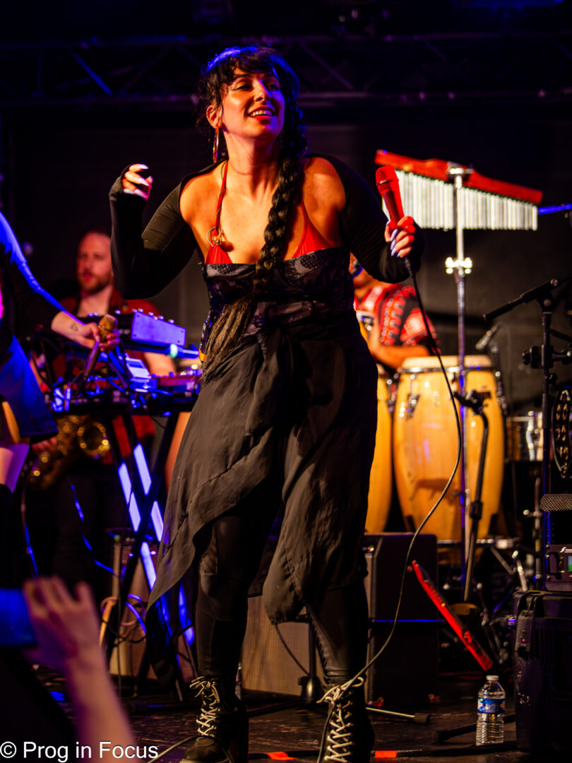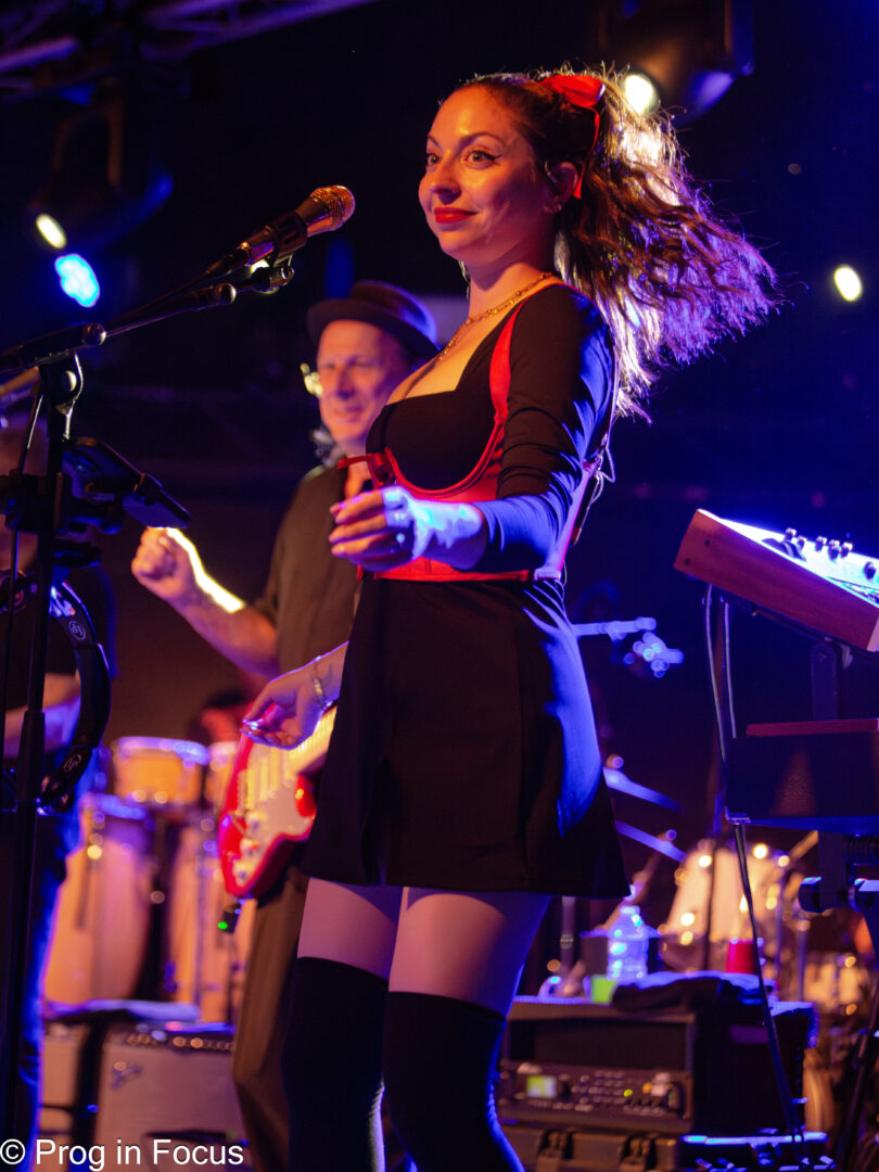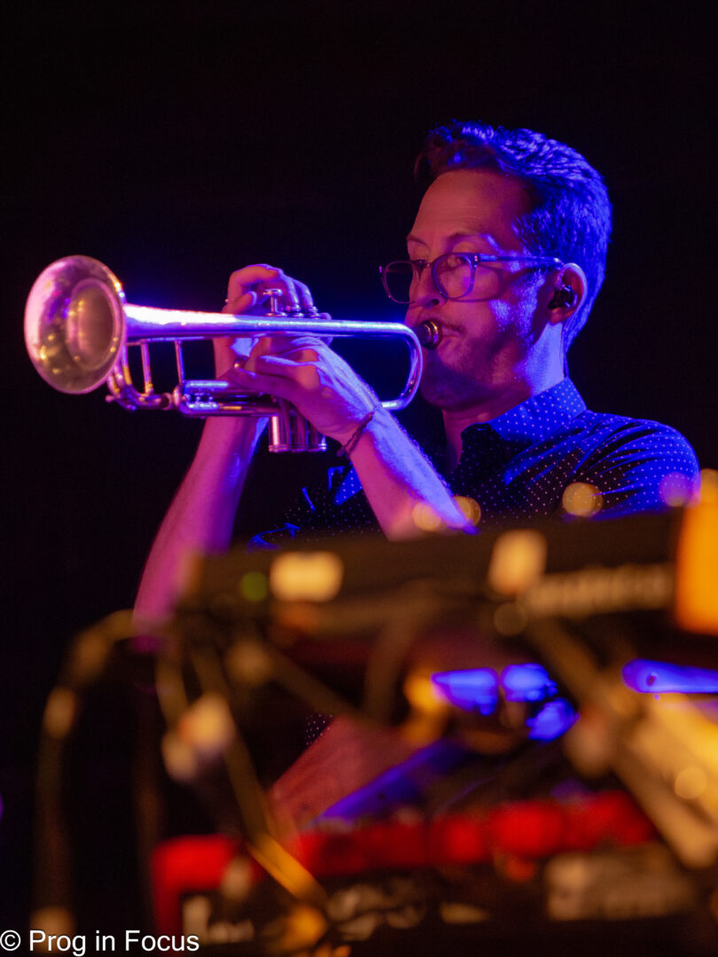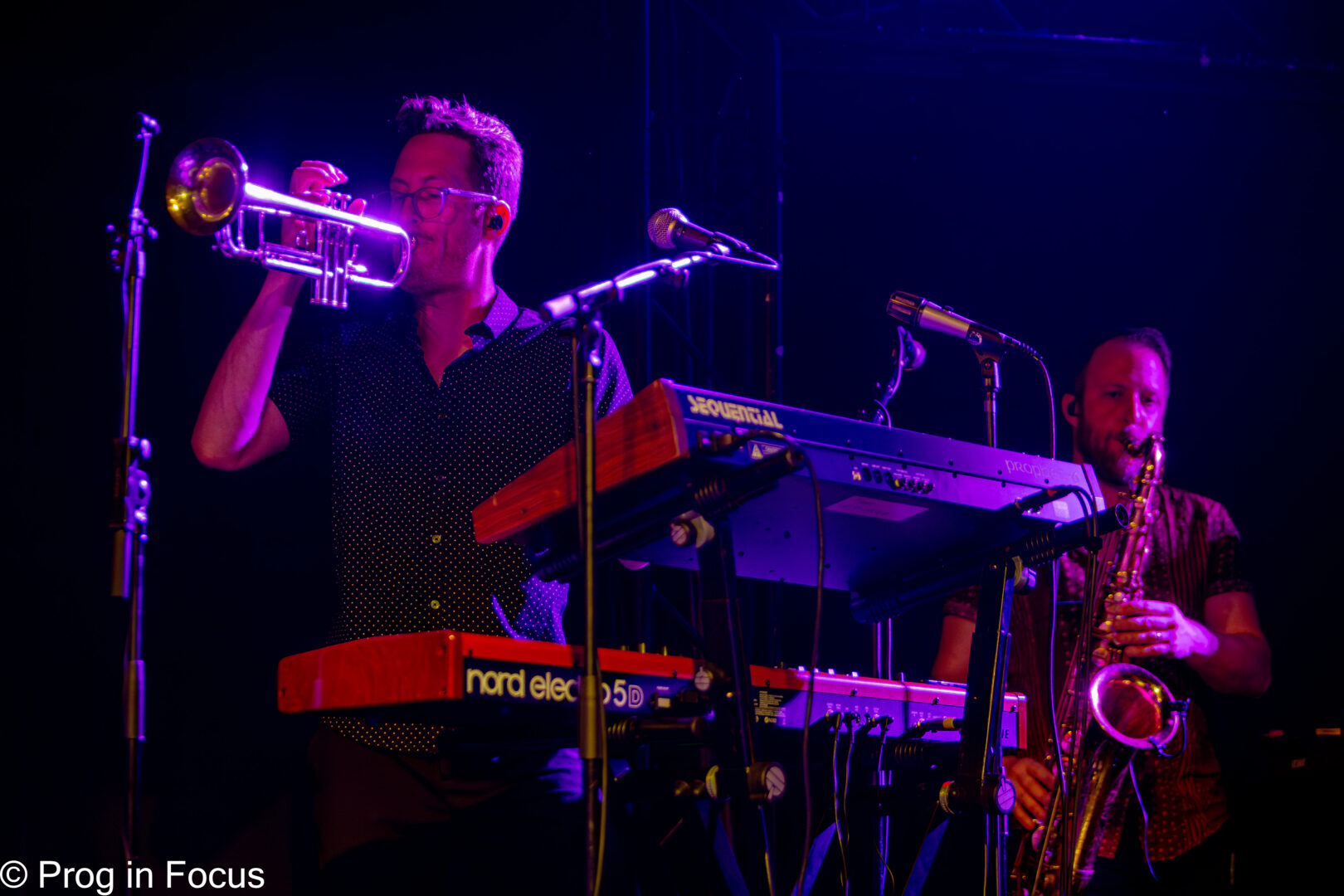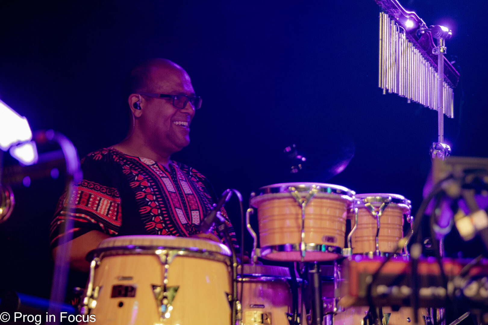Adrian Belew in Köln im ausverkauften Carlswerk Victoria vor rund 1.600 Zuschauern auftraten, war das um gut ein Drittel kleinere den Atelier gefühlt höchstens zu drei Vierteln gefüllt. Schade einerseits – ob da bei der Promo etwas schiefgelaufen war? – andererseits aber auch ein Glücksfall, da man selten so nah an die Musiker herantreten und so ungestört mittanzen kann wie hier. Denn genau das sollte man an diesem Abend tun.