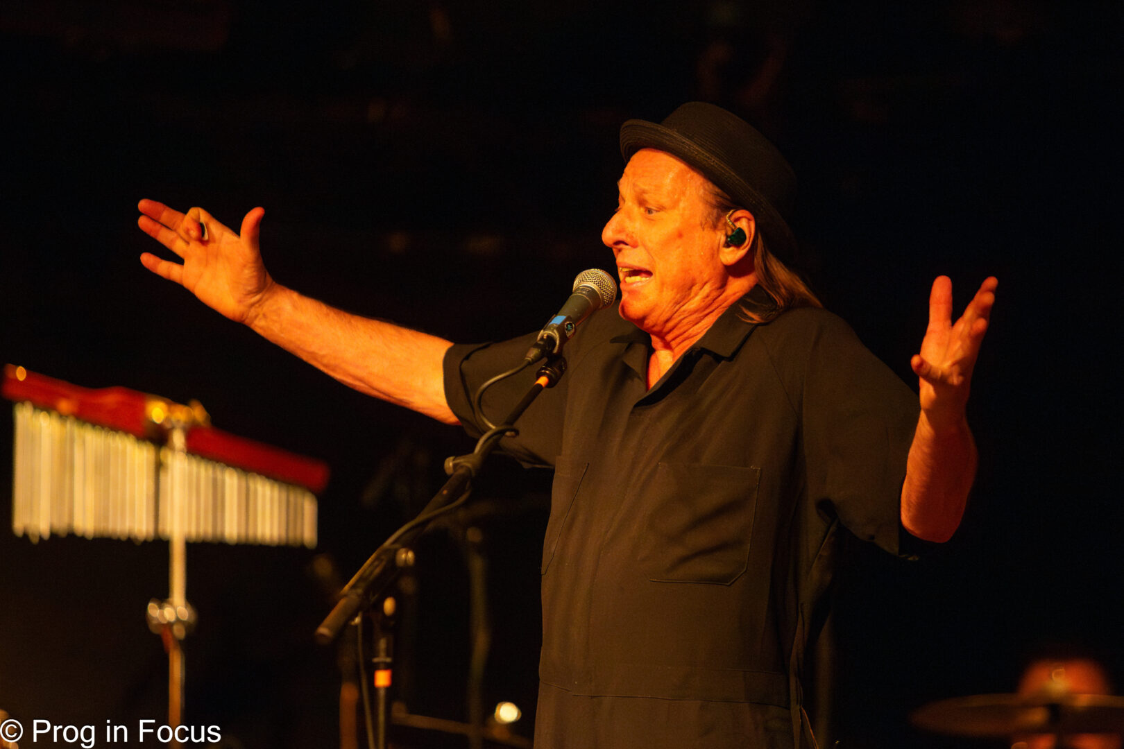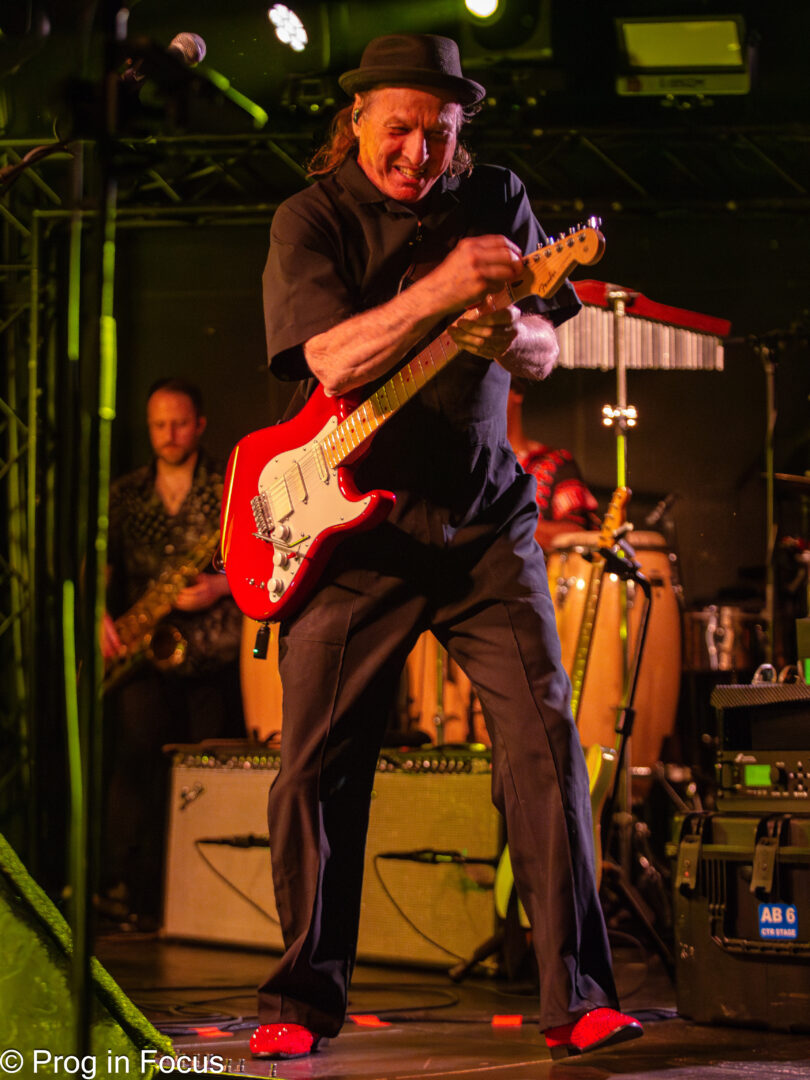 Adrian Belew wirbelte über die Bühne, sprang, grinste, quietschte mit der Gitarre und fiel neben den deutlich jüngeren Mitmusikern überhaupt nicht aus dem Rahmen. Ganz anders