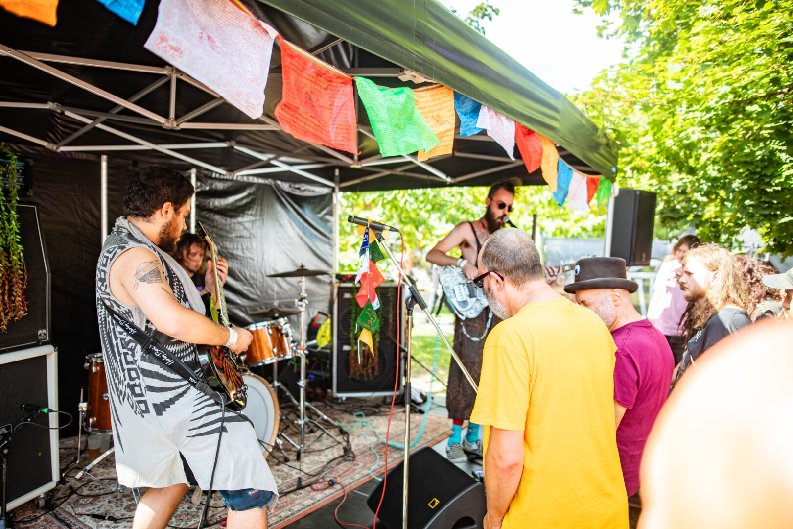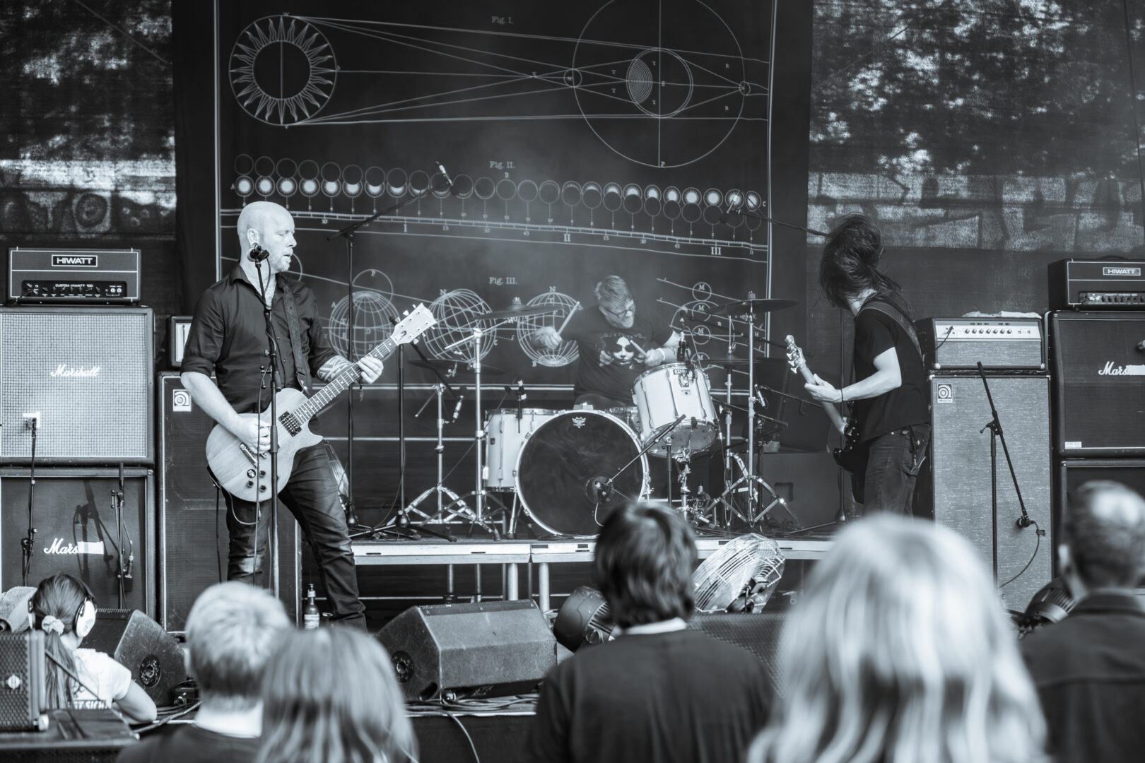 Auf die Amis hatte ich mich gefreut und war auch gespannt, da ich das Power Trio bis dato trotz permanenter Live-Präsenz noch nie selbst erleben durfte. Die Jungs brauchten nur wenige Minuten, dann hatte man die Audience mit gehöriger Bühnenerfahrung, Mc5-Attitüde, dreckigem Rock'n Roll und sattem Fuzz auf den Amps schwer im Griff. Auch hier stand ich und staunte nicht schlecht, wie drei alte Hasen die Hütte so spielerisch rocken und das mit einer musikalisch handwerklichen Versiertheit, die automatisch ein Grinsen ins Gesicht trieb. Wie lässig alle drei ihre Instrumente bearbeiteten, einen höllischen Groove erzeugten und dabei aufreizend cool jeder seine Vokal-Beiträge schmetterte - nur geil und alter Sixties/Seventies-Vibe ist sowieso all inclusive. Das passte perfekt zum Wetter, hatte was von Woodstock in Klein, sind die Jungs in Sachen Style&Sound eh herrlich Vintage unterwegs. Starker und eindrucksvoller Auftritt mit Kurzweil.