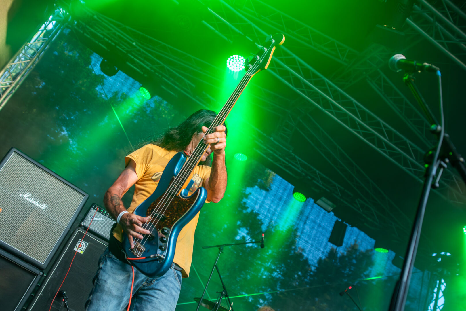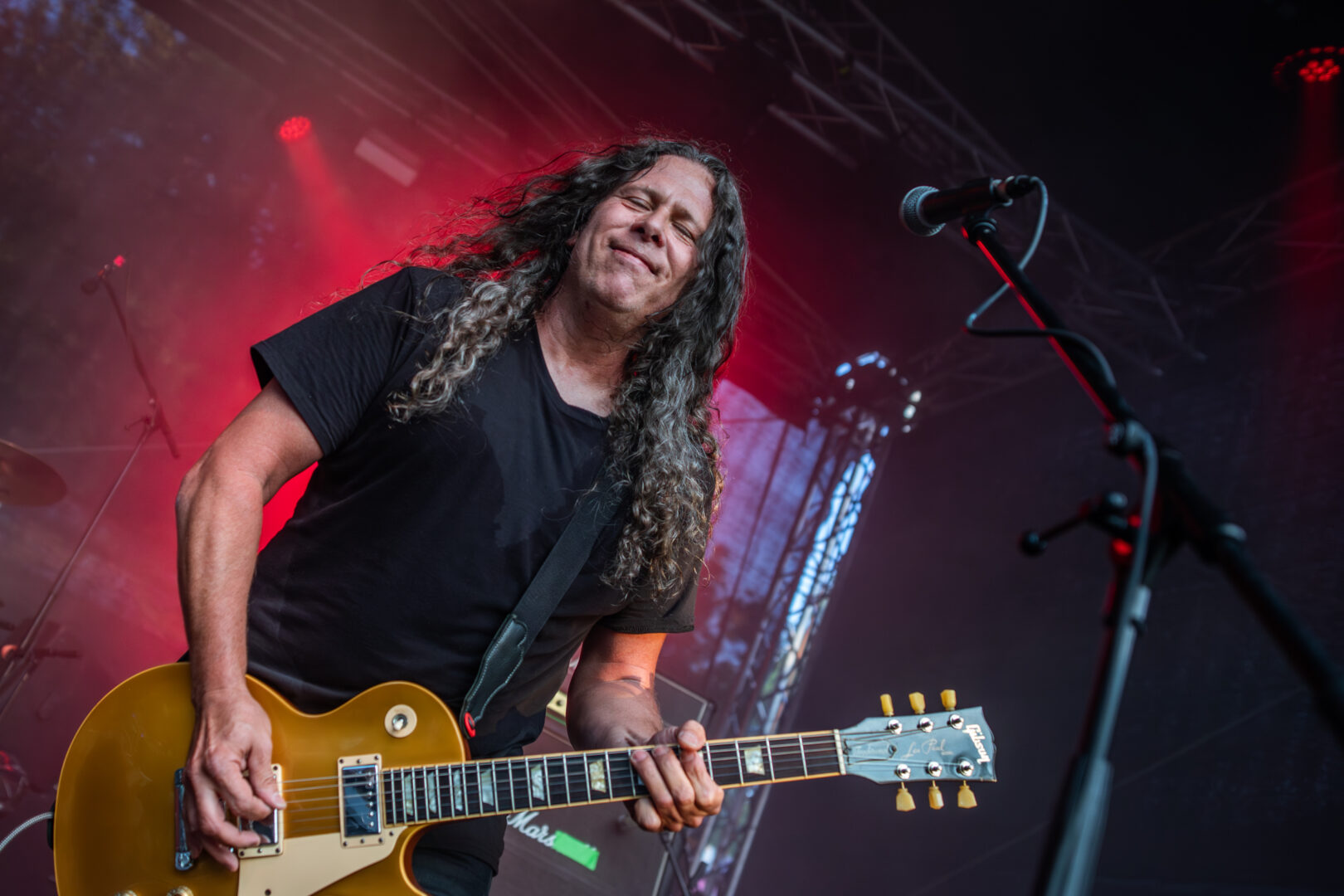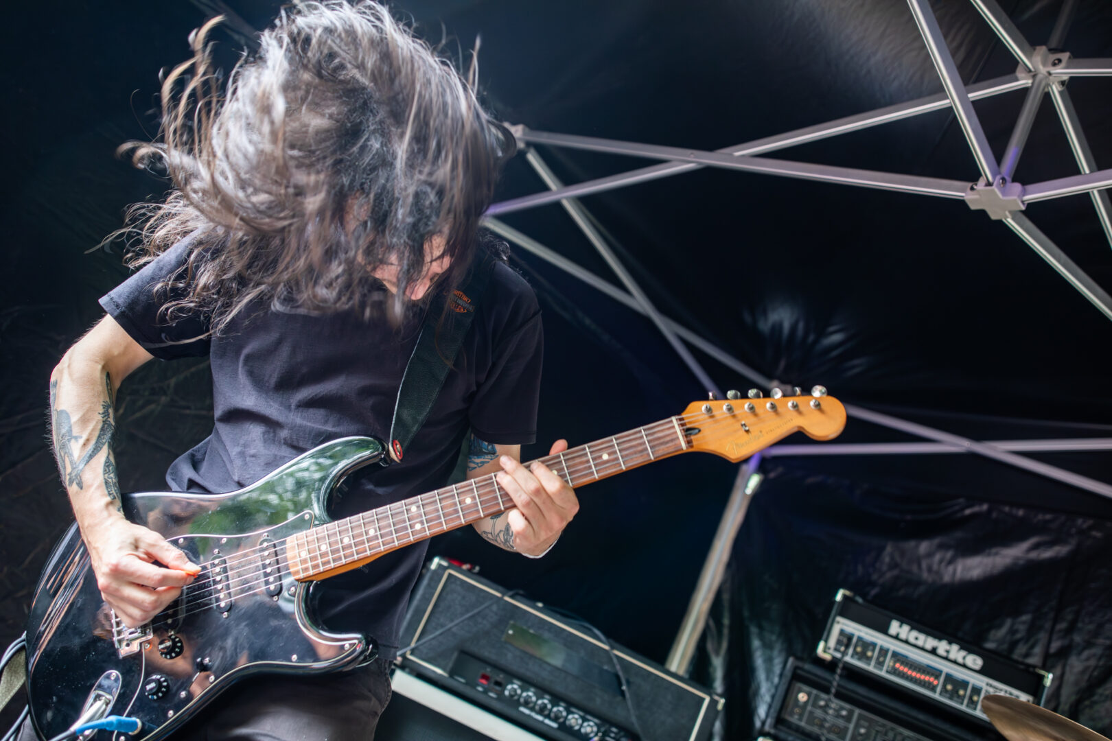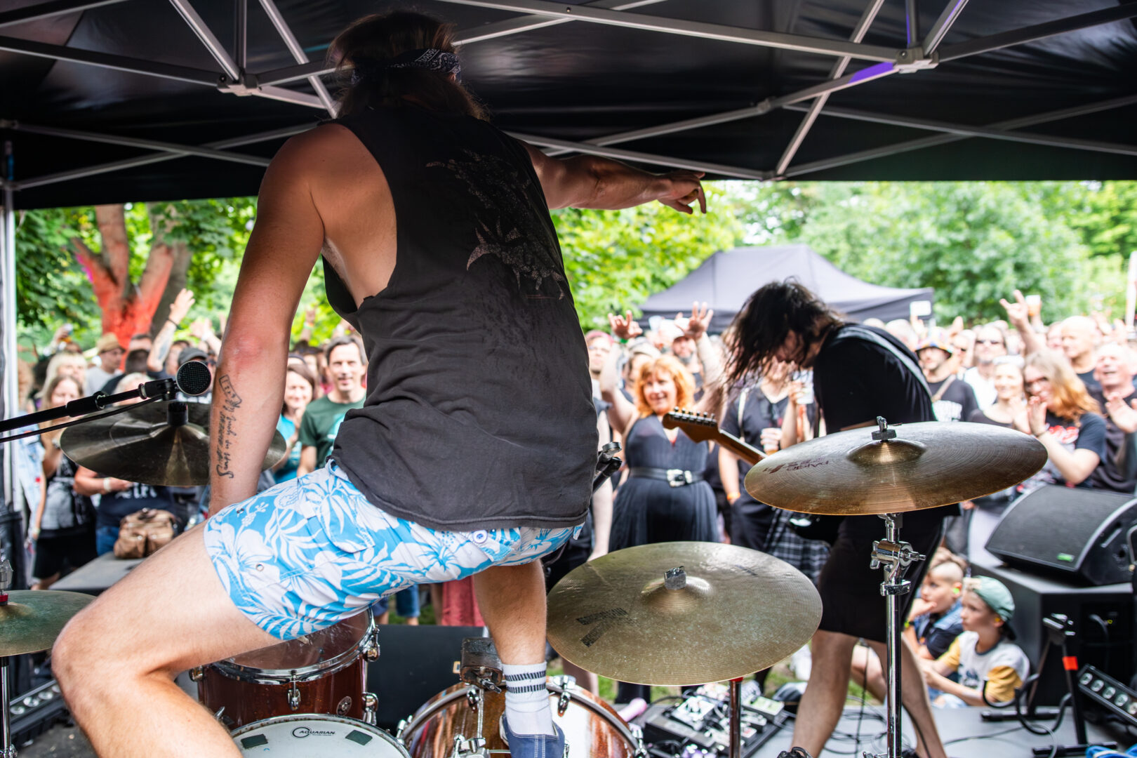 Die Dortmunder sind natürlich längst eine Institution, auf vielen Festivals Stammgäste und die Band hatte Bock. Das Power Trio hatte einen richtig geilen Bühnensound, Bassistin Mercedes grinste im Dauer-Mode und generell hatte die Truppe einfach positive Vibes. Ich musste bei manchen Songs dank des schweren Grunge-Fundaments im Sound an die frühen Smashing Pumpkins denken, auch wenn die Band natürlich breiter aufgestellt agierte. So viel Groove – direkt ins Herz und Brust spielende Power Chords – ein starker Gitarrensound und hier fing meine mentale Liebelei mit dem sich später wiederholenden Gedanken an: „Wow, dies alles nur mit einer Gitarre – sowas von fett und heavy." Auch wenn die Band früh dran war, jeder Song war ein kleiner alternativer Hit, die Soli von Sänger/Gitarrist Danny gingen direkt durch jede Vene und dies alles mit praller Sonne nach einer Woche Dauerregen – Herz, was willst Du mehr?