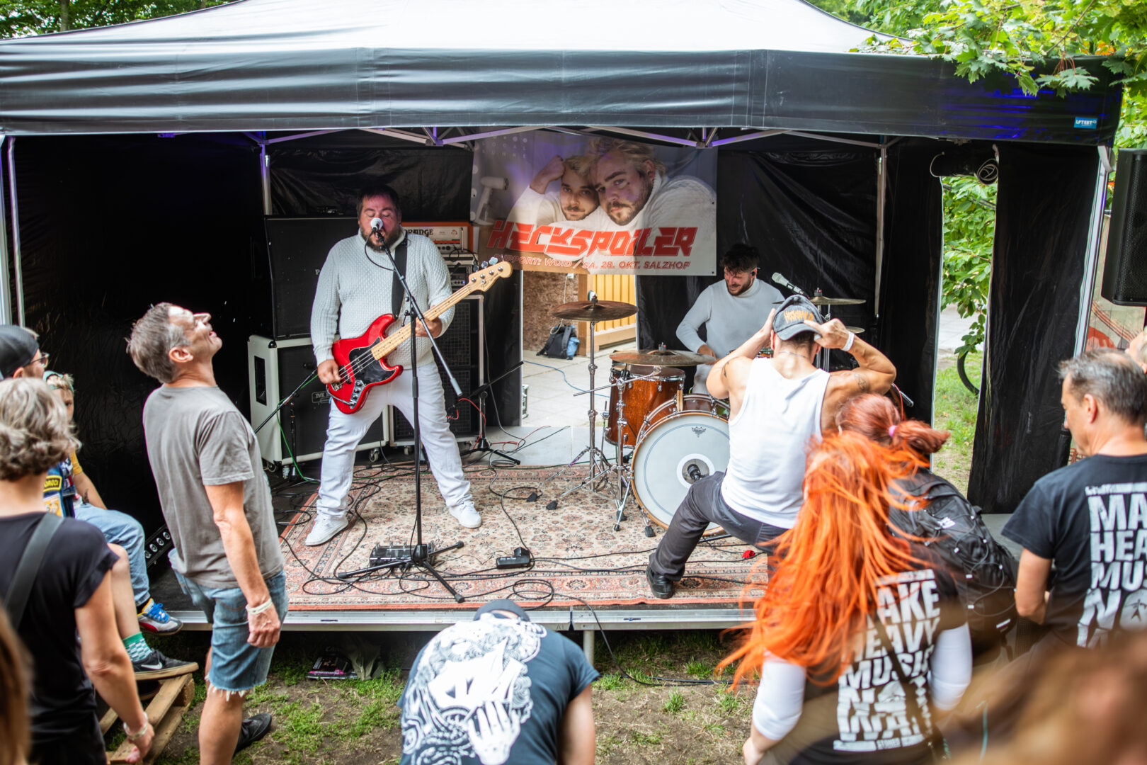 Mit Heckspoiler aus Österreich hatte ich ebenfalls bis dato keine Berührungspunkte. Mit wilden Sludge/Punk Versatzstücken schepperte man sich auf der Sidestage durch den kurzen Set, auf dem doch einige der Zuschauer explizit gewartet haben. Energetisch war's definitiv mit synchroner Optik, roh und voller Power - mein Sound war es nicht so ganz, wenn auch die Ösis mit ordentlich Beifall und Sympathiebekundungen von der Bühne geklatscht wurden.