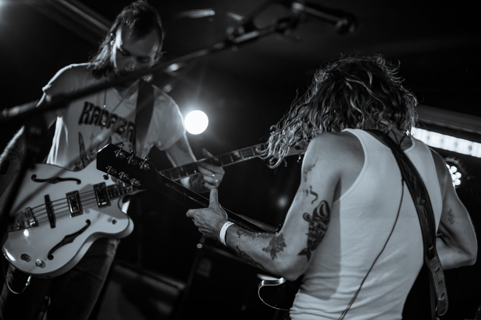 Die Jungs muss man sicher nicht mehr irgendwem vorstellen, sind sie doch eine der aktivsten und populärsten Instrumental-Psych-Rocker aus deutschen Landen. Nach dem schweren Schicksalsschlag in 2023 (Drummer Steffen erlag seinem Krebsleiden) war es für mich als Besitzer aller Platten in Vinyl endlich mal die Ehre, die Jungs live zu erleben. Die positive Anspannung seitens des Publikums im langsam nächtlicher werdenden Venue passte hervorragend zu dem, was folgen sollte. Im durchgehend perfekt visuell untermalten Set durfte man sich einfach nur richtig schön fallen lassen. Großartige Gitarren, generell ein Meer an Atmosphäre ließ für eine Stunde mal komplettes Abschalten zu – ein Hochgenuss und auch hier ein riesiges Kompliment an die Sound-Leute! (denen ich eben dieses auch persönlich aussprechen musste, hatten alle Bands einen Gitarren-Sound vom Feinsten!).