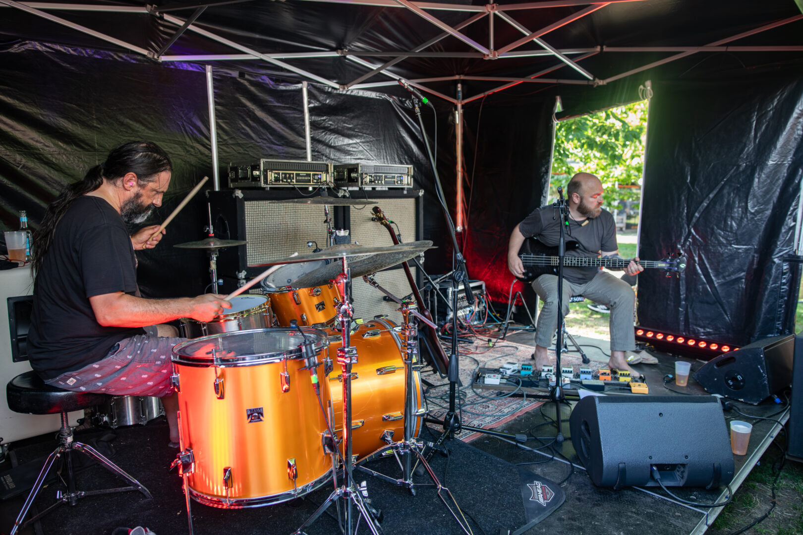 Beehoover sind auch schon länger dabei, haben definitiv ihren ganz eigenen Vibe/Sound und machen als Duo ordentlich Alarm, sind wahlweise richtig stark in Sachen progressiven Grooves. All das ohne Gitarre, reichen hier vertrackte, sehr intensive Drums/Percussion und Effekt-behafteter Bass und ab geht die Reise. Was dabei auf der kleinen Sidestage zelebriert wurde, hatte Schmackes, war intensiv, proggy und voller dynamischer Kurzweil. Wenn man nichts erwartet, Ihr wisst ja..
