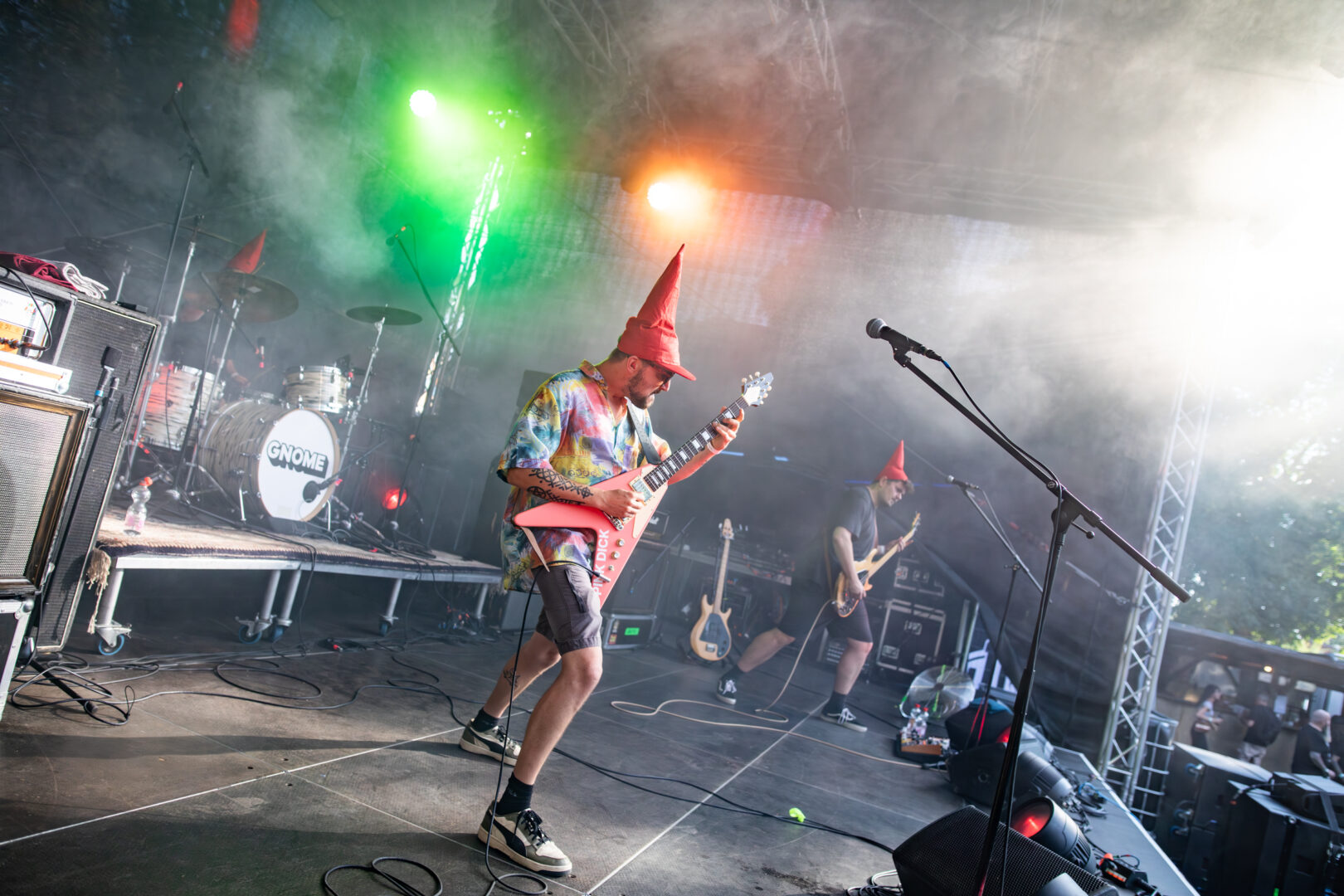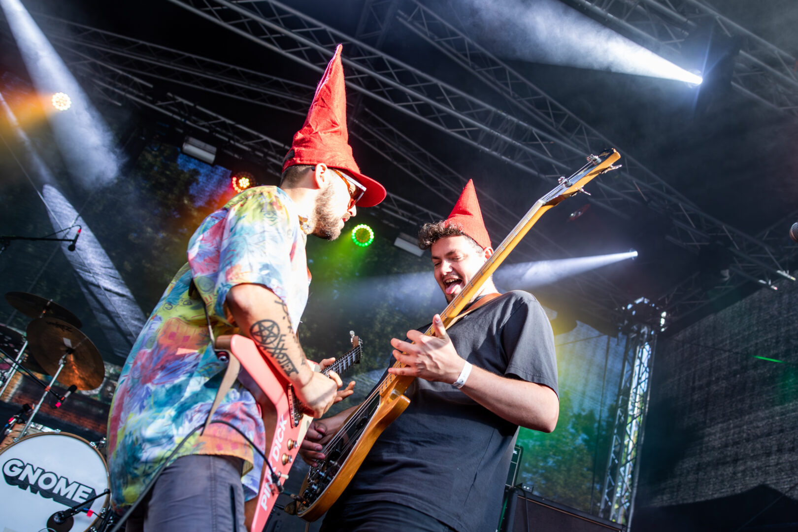 Die roten Wichtelmützchen einiger Fans/Zuschauer waren schon der versteckte Hinweis darauf, heute sind Gnome aus Antwerpen in de House. Ich möchte ehrlich sein, ich kann mit dieser Art funky-progressivem Stoner/Alternative Metal nicht so viel anfangen. Der immer etwas schräge, unterhaltsam freakige Sound ist handwerklich sicher ne Bank, mir persönlich ist es zu sehr auf schräge Unterhaltung im Primus-Stil gebügelt und auch wenn schmissig/eingängig metallische Rock-Nummern nicht von der Hand zu weisen sind – das Publikum dies zu honorieren wusste – fand ich nach Abzug der roten Wichtel-Hüte blieb so viel nicht übrig. Es ist letztlich nur ein ganz subjektiver Eindruck, den ein großer Teil des Publikums eh offensichtlich anders wahrzunehmen schien.
