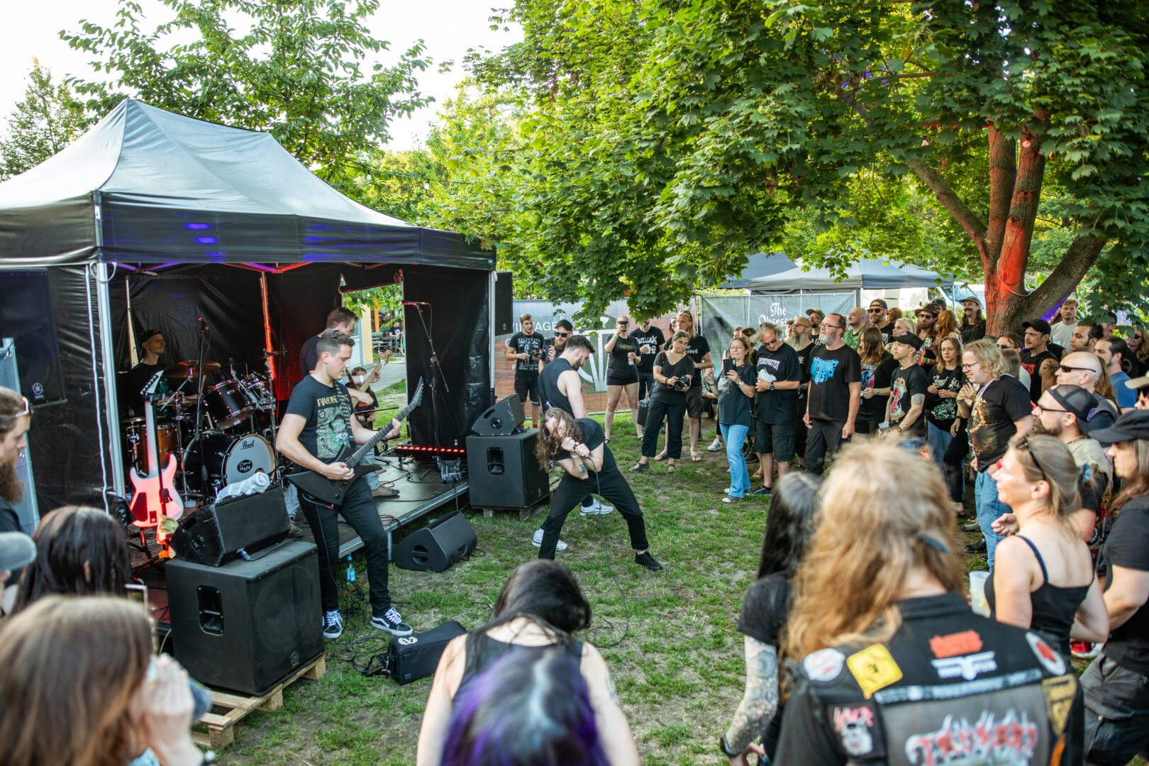 Dann wieder fix zur Sidestage und dann doch nicht wirklich. Nalar aus Berlin spielen melodischen Death Metal – diesen auch mit ordentlich Finesse und Begeisterung - was mich stilistisch persönlich nicht wirklich hinterm Ofen hervorlocken konnte. Cool war die Performance trotzdem, vor allem der Sänger, aber auch die Mitmusiker tobten sich unmittelbar vor der Bühne mit Kontakt zum Publikum gehörig aus – sehr sympathisch das Ganze. Die Zuschauermenge honorierte auch diesen kleinen Quickie auf der Mini-Bühne mit Headbanging und einigem Applaus. So soll es sein..