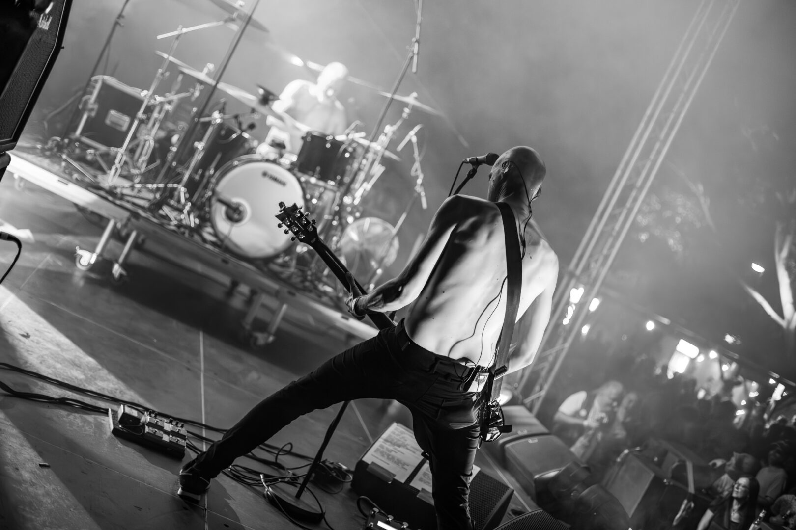 Der Bandname passt hier ohne wenn und aber zum Sound dieses Kieler Trios. Ein auf der Brust vibrierender, massiver Tune, den die Jungs als Teppich/Fundament da mit nach Cottbus brachten. Erneut nur zu dritt wird hier in Sachen doomiger Heavyness eine Wand hochgezogen – mit Growls und allem was dazu gehört – meine Herren, da war ich erneut baff. Die Songs haben immer wieder unruhige dynamische Drums – Drone und satter Stoner Doom lassen das Ganze nicht komplett statisch erscheinen. Die Band hatte ebenfalls einen kraftvollen Bühnensound verpasst bekommen, Klampfe und Bass sind ein breit ausgelegter Teppich, auch wenn natürlich eine gewisse Monotonie nicht ganz ausbleibt. Zum weiteren wach werden passte auch dieser Brachialsound ohne weiteres.