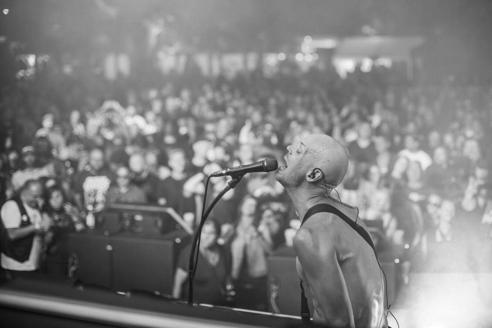 So, mit dreckigem Retro Rock war nun Schluss, die Sonne ging über in den abendlichen Fade Out. Das passte, kamen jetzt mit den düsteren Hipstern und sehr angesagten Post-Metallern von Harakiri For The Sky ganz andere Vibes über Cottbus. Die vielen Kutten/Patches-Träger, wahlweise Shirts mit Black Metal-Logos zielten schon im Vorfeld darauf ab, dass mit dem diesjährigen Blue Moon Line-Up auch die Fraktion des düsteren Metal auf ihre Kosten kommen sollte. Passendes Bühnenlicht und dauerhaft urbane Verzweiflung im Gesang ließen nun stimmungstechnisch ganz andere Atmosphären vibrieren. Der Sound auf der Bühne war bis auf seltsame Mikro-Probleme ordentlich, latent oldschoolige/katatonische Gitarren-Leads verbreiteten melancholische, brachiale Schwere – als wäre ich dagegen abgeneigt, haha. Die gewisse Eindimensionalität im Gesang, der immer gleiche Ausdruck von Schmerz und Sehnsucht ist auf Platte gefällig und schnittig – live in der Performance des Sängers etwas eingleisig. Egal, man konnte sich darauf einlassen und die Song-Auswahl war hervorragend. Die Band agierte sympathisch/leidenschaftlich, geschlossen und energetisch – was will man mehr?