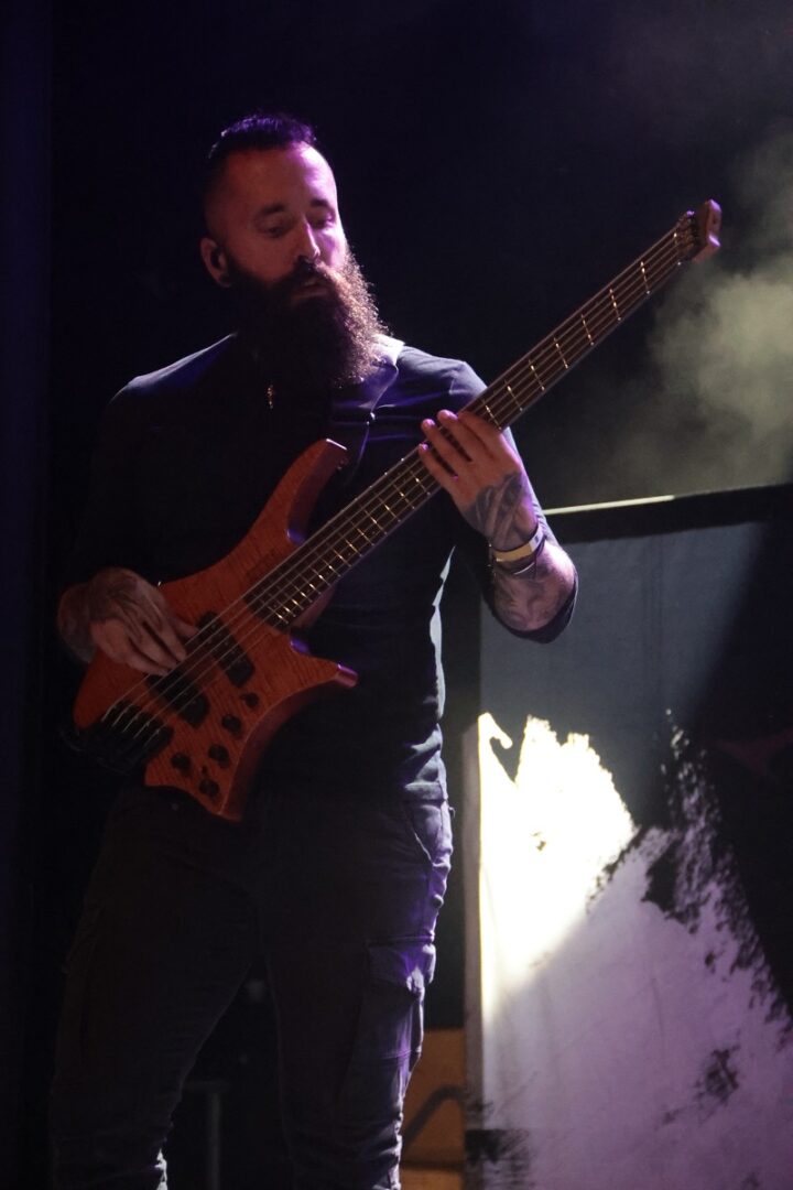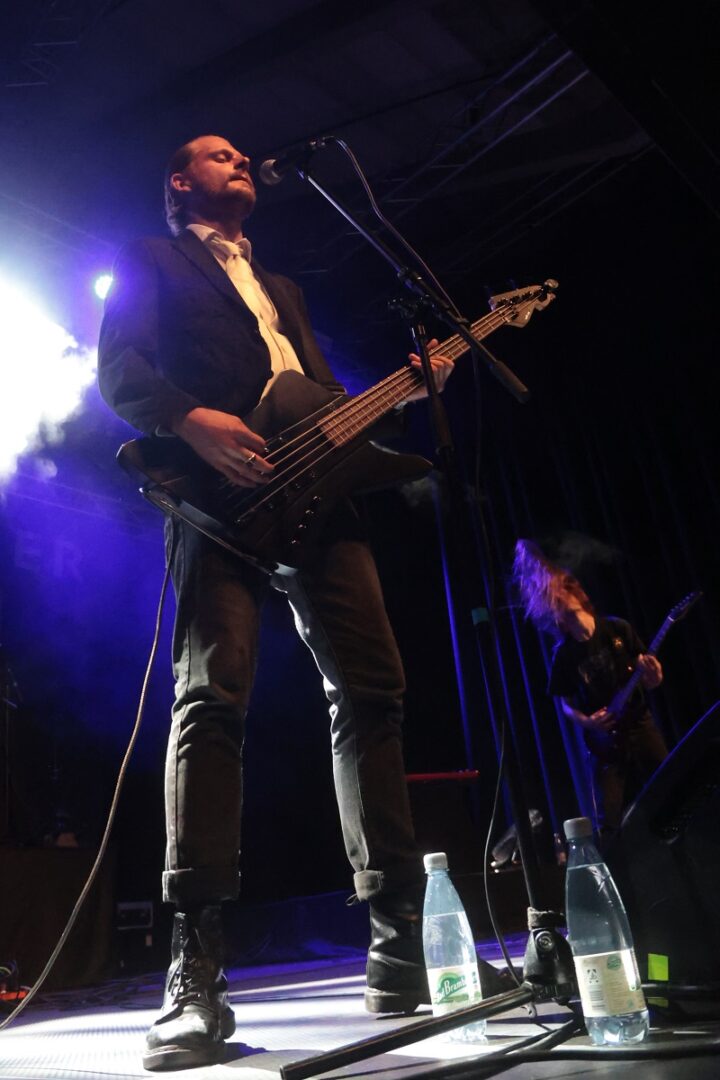 Spätestens im Verlauf von ‚My Denial‘ war die Begeisterung bei uns aber bereits erheblich. Der Sakko-gewandete Sänger/Bassist Till Bade kann sowohl amtliche Growls wie auch sehr starken, „grungigen“ Clean-Gesang (Till grinsend nach dem Gig: „Da könnte schon etwas dran sein, ich habe mal in einer Grunge-Coverband gesungen“).