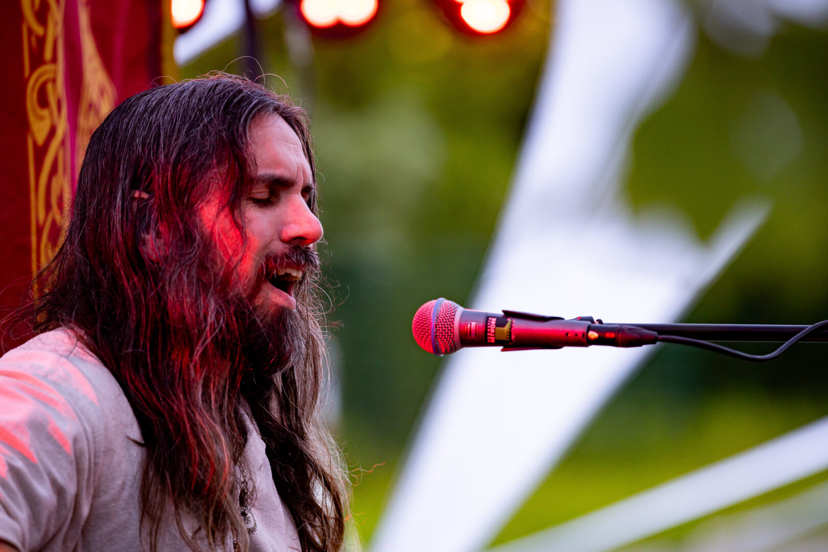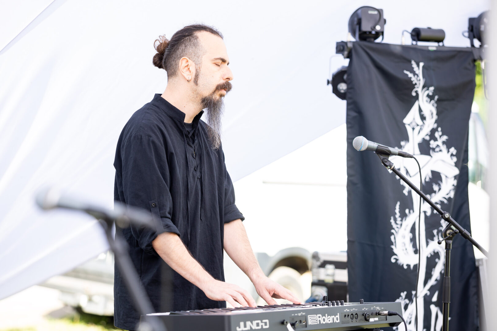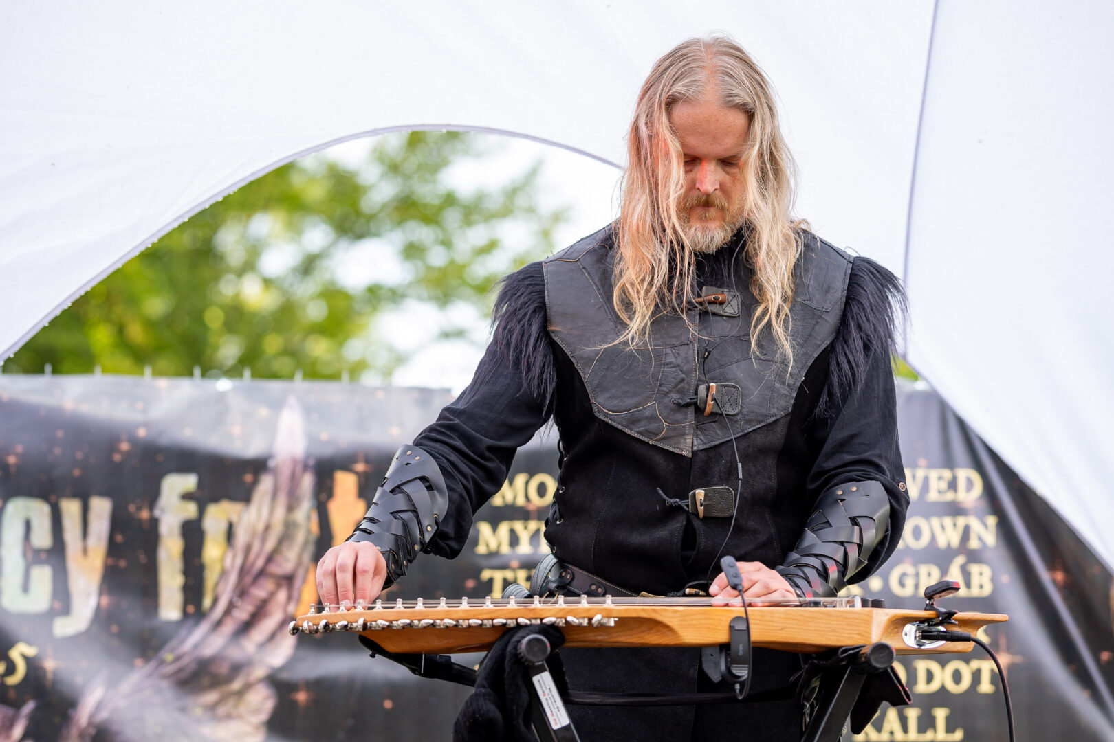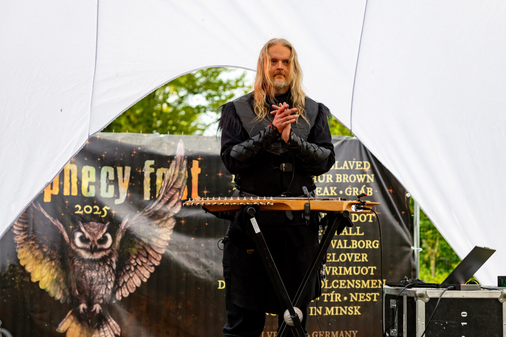 Harfe und New Age-affine, sehr nordisch angehauchte Tunes bekam man vom finnischen Projekt Nest zu hören. Auch hier waren es eher lieblich meditative Klänge, die statt düster eher was Sanftmütiges ausstrahlten – was zur netten traditionellen Erscheinung des Musikers Aslag Tolonen (auch in Syven und vielen weiteren Bands involviert) selbst wie die Faust aufs Auge passte. Die typisch nordischen Melodien fanden Gehör und so langsam groovte man hinein ins Billing.