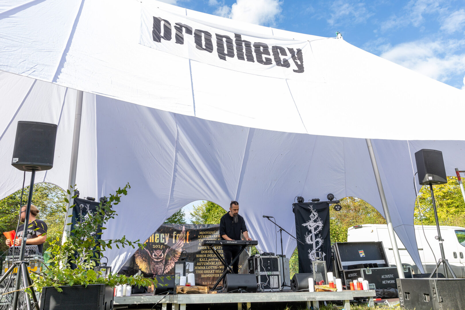 Nach 2023 folge ich zum wiederholten Male der Einladung zum längst renommierten Prophecy Fest in der wundervollen Balver Höhle. Die diesjährige Auswahl der Künstler weist zwar einige Überschneidungen zum besagten Event in 2023 auf (Darkher, Dornenreich, Grab, The Vision Bleak), aber dies sind natürlich absolute Luxus-Probleme, gab es auch in diesem Jahr zusätzlich einige neue/alte Schwergewichte zu erleben. Es bleibt zwar einiges zu fahren bis zum Zielort, aber dort erwartet einen für drei Tage Musik non stop, gute Gespräche hier und da..also ging es in diesem Jahr mal pünktlich ab Donnerstag bereits los, sodass man den Eröffnungsmoment auf dem Zeltplatz und die ersten Open Air Acts als Auftakt mit den ersten Gästen gemeinsam genießen durfte, die zum Teil aus Spanien, der USA und Mexiko erschienen, Wahnsinn.