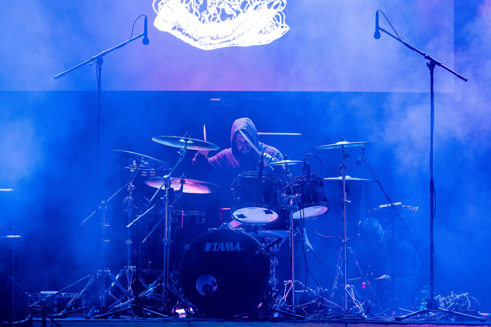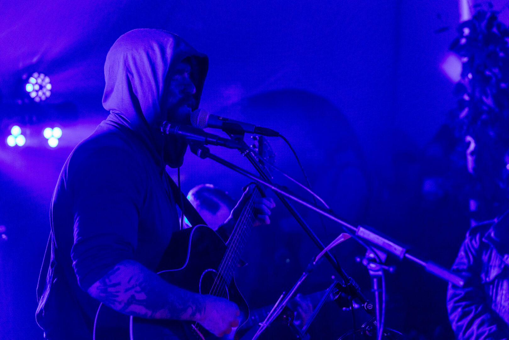 Was das Tempo betrifft, kann die zerbrechliche Chanteuse Jayn Maiven nichts anderes als slow. Dafür lieben die Leute Darkher mit gehörig Drone-Effekten auf den Gitarren – erneut unterstützt von einem zusätzlich aufspielenden Drummer. Mehr braucht das Duo auch nicht, um einen dichten, schweren Teppich auszulegen, in den man sich für die ebenfalls knapp 45 Minuten schön hineinfallen lassen konnte. Alle wichtigen Songs waren erneut dabei, das Maß an geisterhafter Zerbrechlichkeit und episch mystischem Post Metal wurde mit passendem Licht zu einer wie immer sinistren Abfahrt.