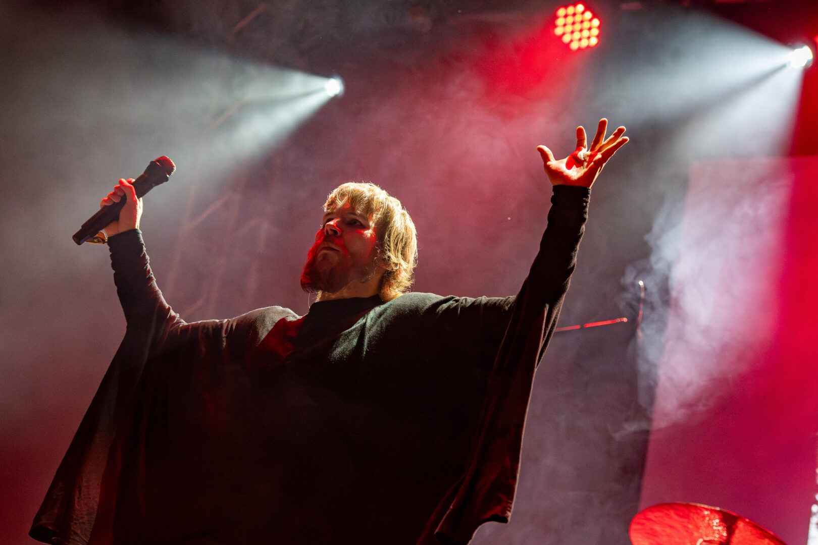 Mit dem God of Hellfire, der 83-jährigen Legende Arthur Brown ging es nach einigen Bühnendeko-Vorbereitungen irgendwann endlich weiter und Holy Shit, das hat mal so richtig Laune gemacht. Wie ein kleines Theaterstück kommt der Klassiker bei jedem Song mit neuer Optik/Outfit auf die Bühne und ja..er hat offensichtlich seinen Spaß. Die drei restlichen Mit-Musiker haben visuell ebenfalls Charme mit ihren bunten Outfits und 'Fire' mit flammendem Kopf ist und bleibt der Höhepunkt des Gigs. In dem Alter noch musikalisch und agil die Dreiviertelstunde zu feiern – Respekt an Arthur Brown und cool, dass ich das Glück hatte, den Oldie noch live zu erleben.