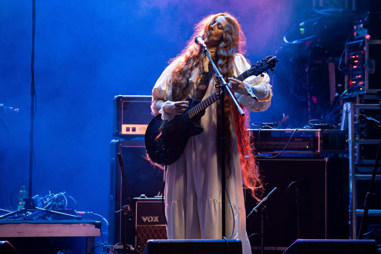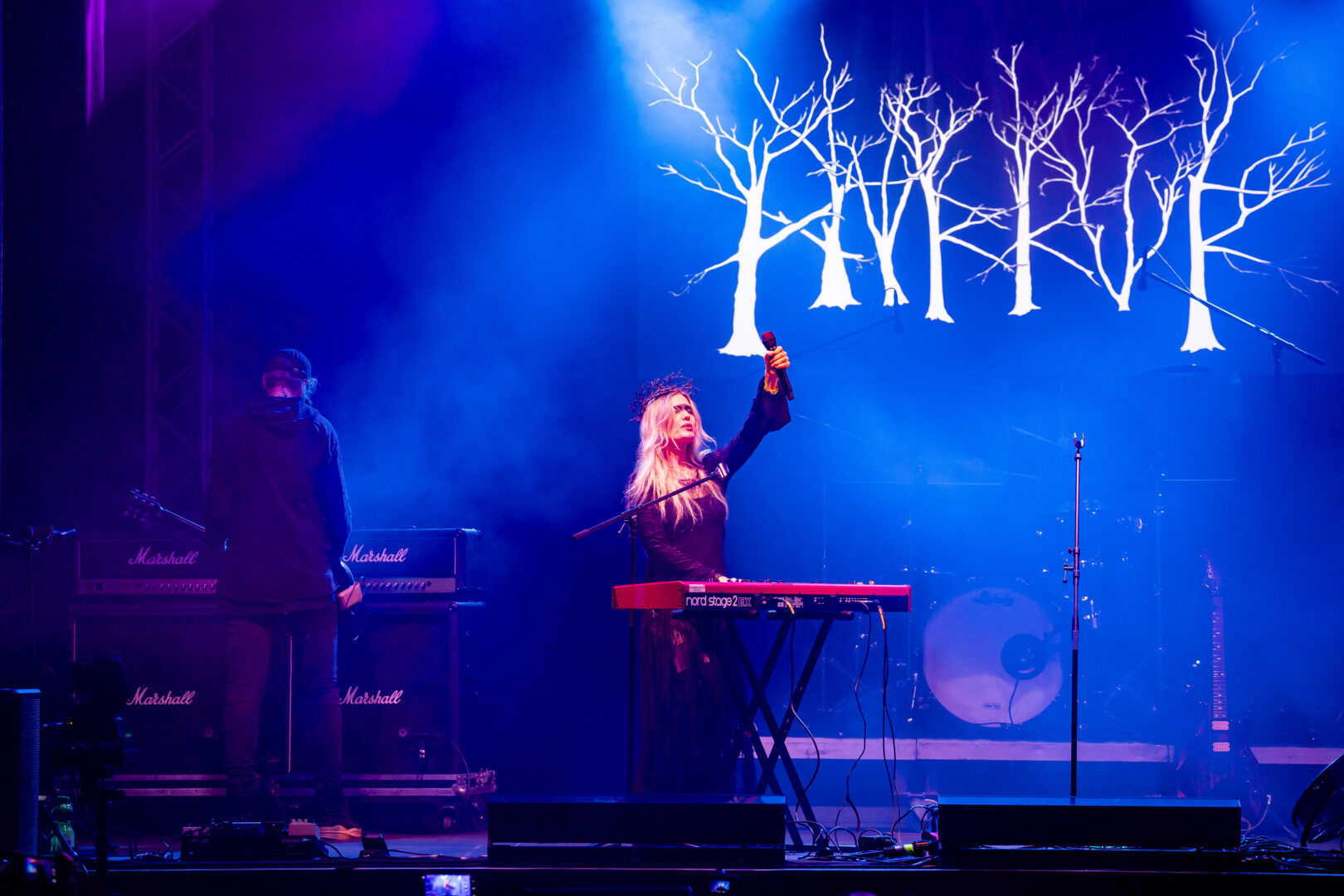 Die Dänin Myrkur ist seit Jahren Konsens im hippen düsteren Metier, die Tour mit Shooting Star Jonathan Hulten vor nicht allzu langer Zeit war bereits ein famoses Package. Für die Balver Höhle ist der anmutige nordische Sound wie gemacht und so kam Sie, sah und siegte. Ich für meinen Teil war hin und weg, berührten mich die Songs noch um ein Vielfaches mehr als sie es sowieso sonst schon immer taten. Stücke wie das nur wunderschöne 'Like Humans' oder 'Spine' sind einfach nicht von dieser Welt, machen was mit einem und ich hab den Moment so richtig aufgesaugt. Perfektes Licht und Atmosphäre, die Leichtigkeit und Grandezza, die von der Künstlerin wie immer ausgingen – taten letztlich ihr Übriges. Das Konzert hätte an diesem Abend noch weitergehen können, war mein persönliches Highlight des Events, aber es gibt einen Zeitplan und der führt uns zu..