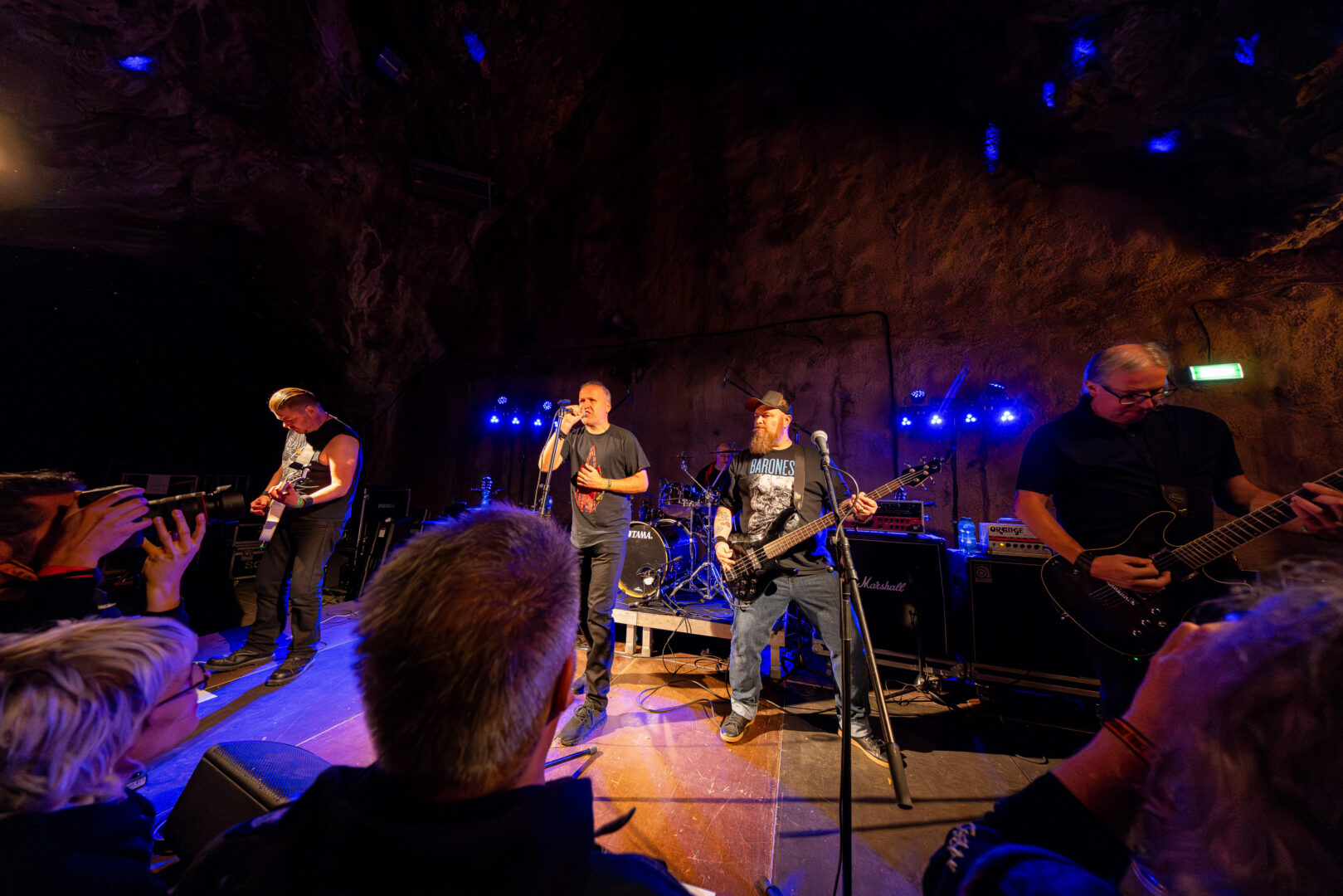 Für den ersten vollen Konzert-Tag in der Höhle stand zuerst das schwedische Projekt Kall auf dem Programm – auferstanden aus der Asche der berühmt/berüchtigten Lifelover (deren Haupt-Songwriter vor Jahren auf mysteriöse, nie ganz geklärte Weise verstarb). Sänger Kim Carlsson ist ein kleines, nordisches Rumpelstilzchen, freaky charismatisch und ziemlich weird in seiner Art zu tanzen/performen. Was auf Platte ein bizarrer Mix aus modernem kranken Black Metal mit progressiven, surrealen Parts ist, entpuppt sich live als zwar spannend zu beobachten – aber musikalisch eher verwaschenener Sound-Mix – bei dem auf Grund des bizarren Sprechgesangs – addiert um wimmernde Black Metal-Laute – und den krude wogenden Tanz-Moves die Aufmerksamkeit fast immer beim Sänger lag. Strange, really strange – aber immerhin mit hohem Unterhaltungsfaktor. Vielleicht ist die biologische Uhr am Nachmittag noch nicht auf kranke nordische Black Metal Schräglagen konfiguriert.