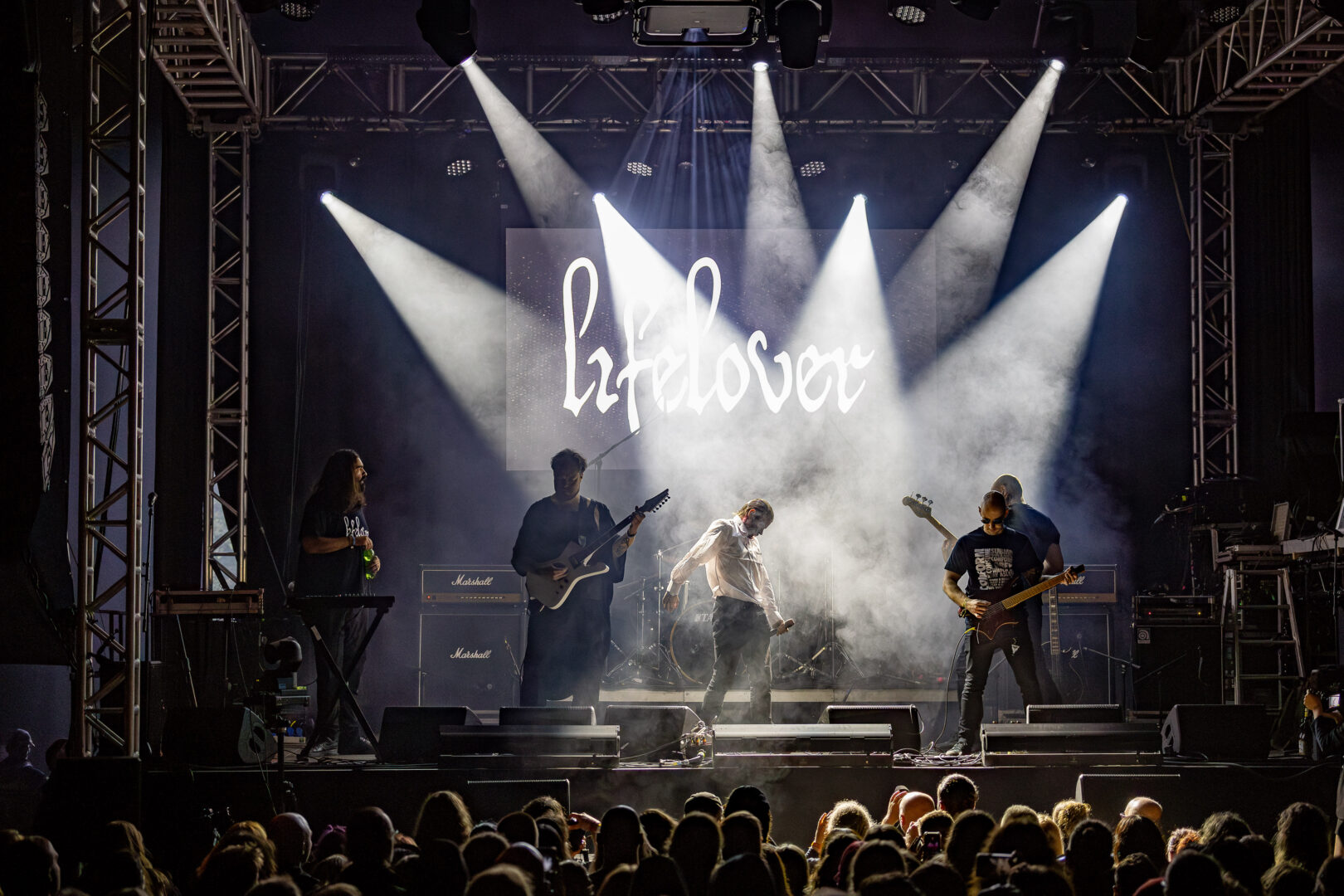 Lifelover aus Schweden genießen schon einen außergewöhnlichen Ruf in der Szene und nicht wenige fieberten vom Hörensagen dem Auftritt der Band entgegen. Da mit dem verstorbenen Haupt-Songwriter und Sänger Jonas Bergqvist das Projekt brachlag bzw. sich aus diesem die Formation Kall formierte, lief die Performance auch angekündigt unter diesem Namen. Mit stranger Optik (weiß-rot geschminkt) kam Kim Carlsson auf die Bretter und ja – erneut ziemlich kaputte Performance vom Sänger mit angedeuteten Ritzen zum Takt der Snare – sic. Seine abgedrehte Art, sich zur kaputten Mischung aus Black Metal und Dark Rock im Takt zu wiegen, ist schon ziemlich abgefahren. Die Audience hat auf diesen Gig gewartet und schien größtenteils schwer angetan vom Tun der Schweden. Ich hab mir das in Ruhe angeschaut, muss aber erneut sagen, dass der ständig pathetische Sprechgesang, das heisere Grummeln von Carlsson über die komplette Zeit ein wenig unter seiner Eindimensionalität litten - dafür die Songs an sich samt Theatralik mit hohem Unterhaltungswert punkteten. Spannend und sicher eher einmalig die Chance, diese Songs live zu erleben und das allein war es natürlich schon wert.